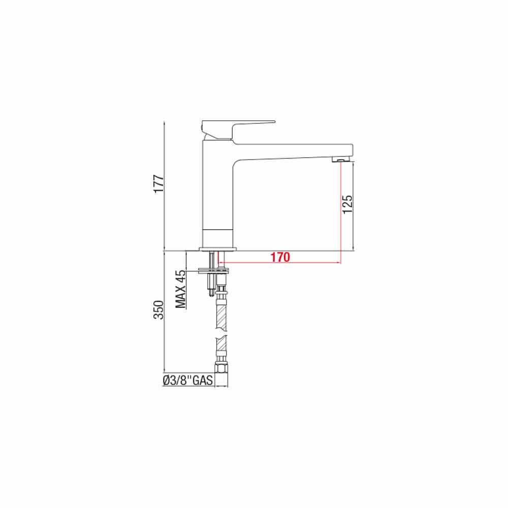 Utökad mässingsblandare för handfat utan avfall Made in Italy.