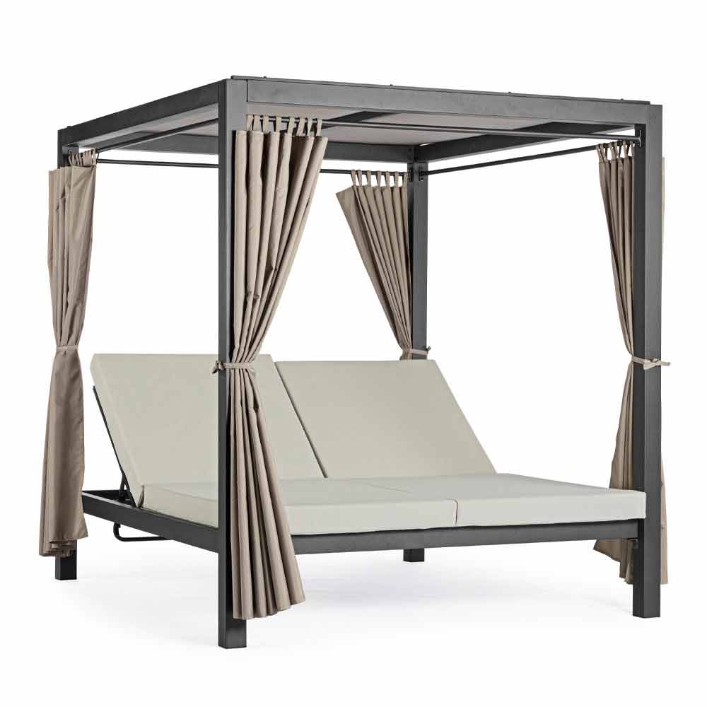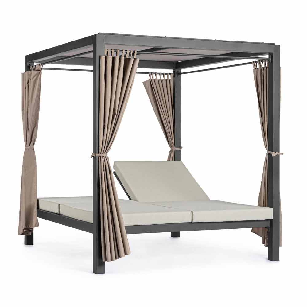 Utomhus dagbädd i aluminium och textilin med fällbara ryggstöd.