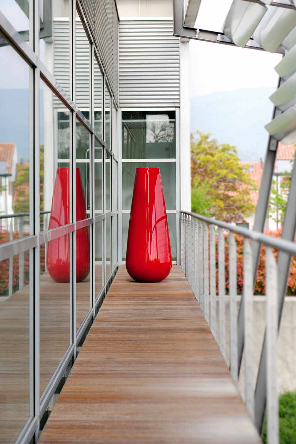 polyeten , den finns i den ogenomskinliga versionen som kännetecknas av utmärkt motståndskraft mot stötar och värme, i den resistenta och ljuslackerade versionen som gör att du kan skapa spel av ljus och reflektioner som blir huvudpersoner i miljön eller, slutligen, i metallversionen. Perfekt för medelstora växter med vertikal utveckling.