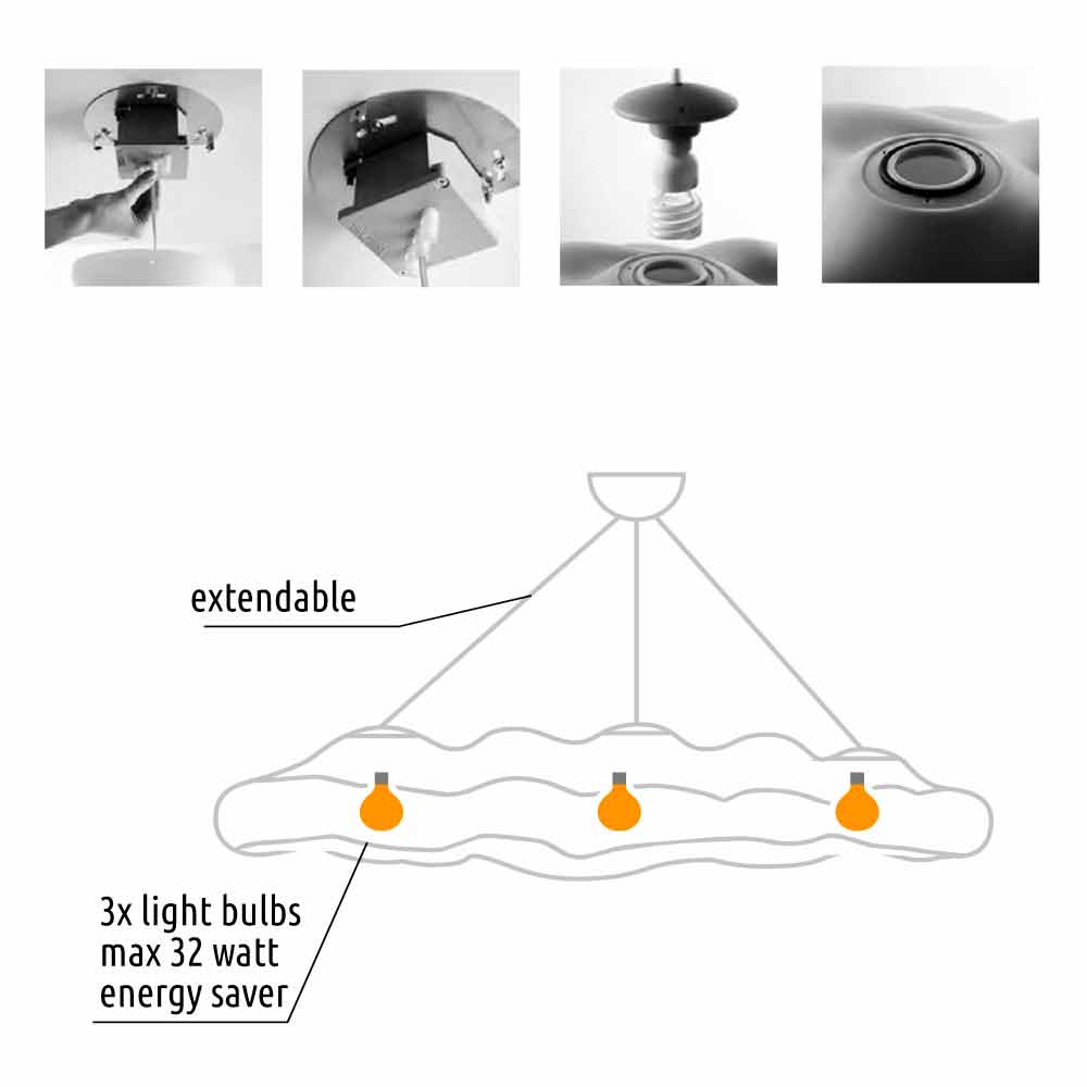 Typ av belysning: 3 x max 32W E27 kompakt lysrör 230V 50/60 Hz (medföljer ej).