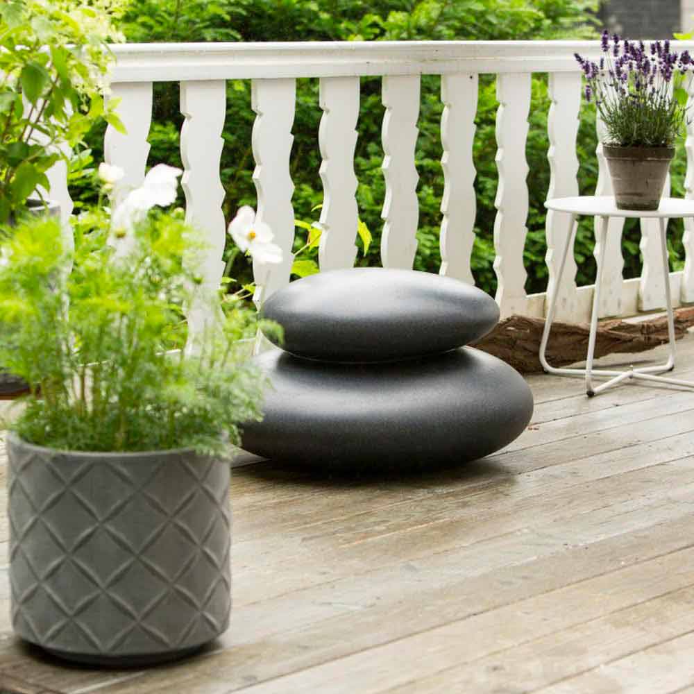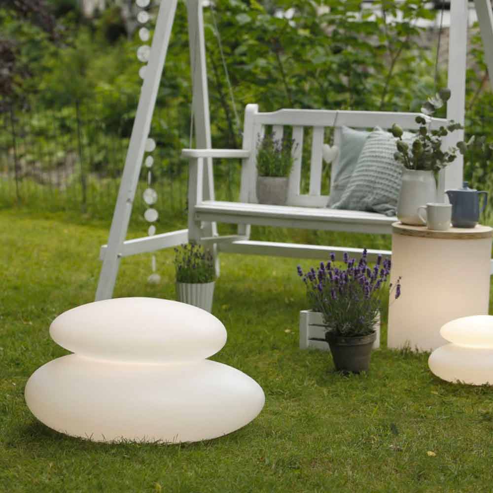 Golvlampa med val av inomhus- eller utomhusangrepp av modern design i form av en sten i färgad polyeten.