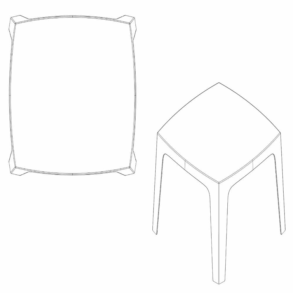 Solid by Vondom kollektionen designades av de två italienska designerna Stefano Giovannoni. Denna linje, trots att den har lätta föremål, ger stabilitet tack vare den väldefinierade geometriska skärningen, som om den skurits i sten. Det är en funktionell samling tack vare dess mångsidighet och dess design. Solid utomhusbordet är tillverkat av polypropen med mineral tillsatser, vilket gör objektet motståndskraftigt mot stötar och UV-strålar.