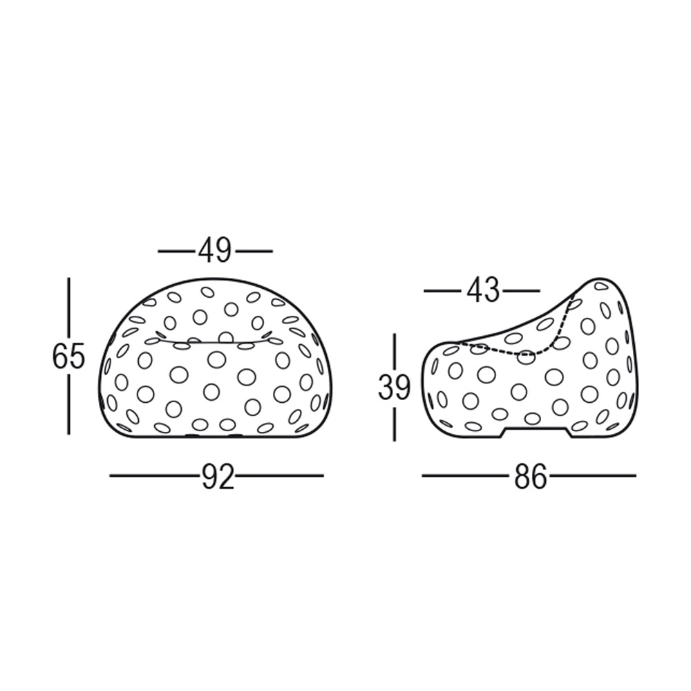 Trädgårdsfåtölj tillverkad i Italien i ogenomskinlig vit polyeten komplett med färgat RGB LED -ljussats för utomhusbruk. En möbleringslösning som kännetecknas av bekväma och moderna linjer som tillsammans med belysningen med LED -ljus gör den till en perfekt kombination av funktionalitet och design . Dess matta finish gör den särskilt motståndskraftig mot sol, stötar och värme samt extremt elegant och med en raffinerad estetik. Den unika och innovativa designen som betonar formerna har en stor naturskön effekt och gör den idealisk för utomhusmiljöer som behöver en idé med en stark personlighet. Den perforerade ytan ger en oöverträffad lätthet till fåtöljen, vilket skapar spektakulära ljusspel tack vare ljuskällan insatt inuti.