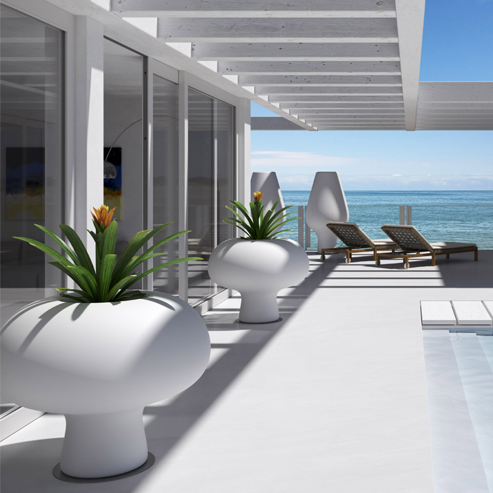 Lysande utomhusvas i ogenomskinlig polyeten med LED Made in Italy.