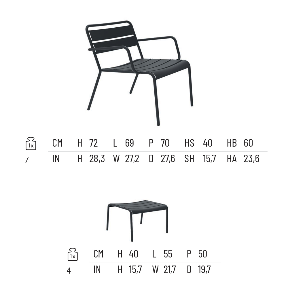 - fotstöd : L 55 x D 50 x H 40 cm.