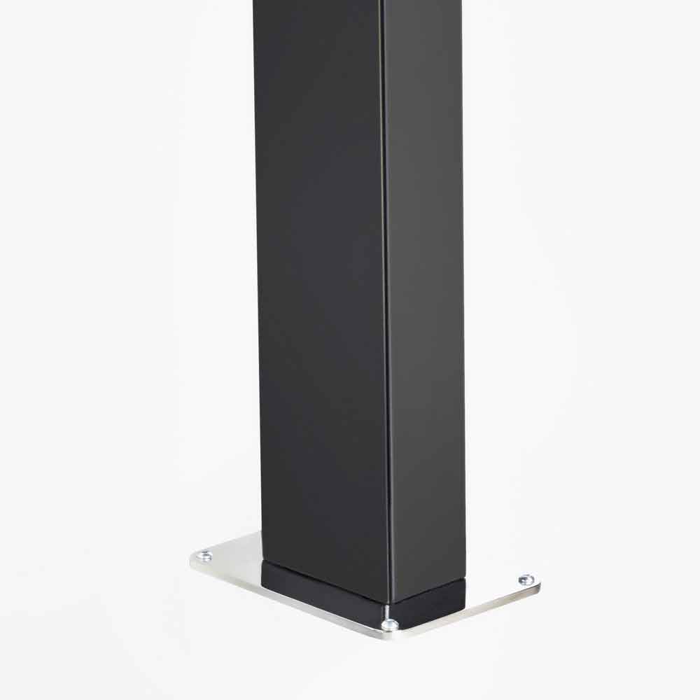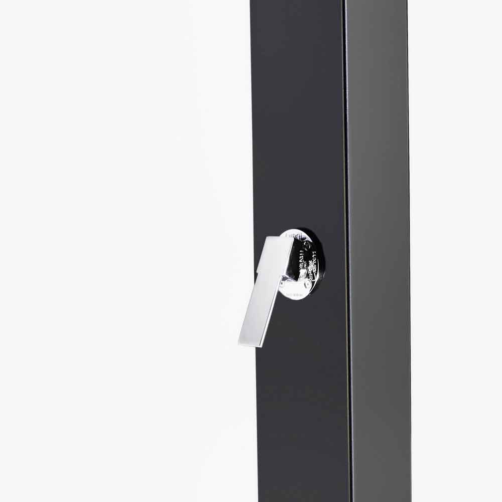 rostfritt stål AISI 304 (3 mm tjockt), ugnsmålad i svart finish och duscharm i polerat