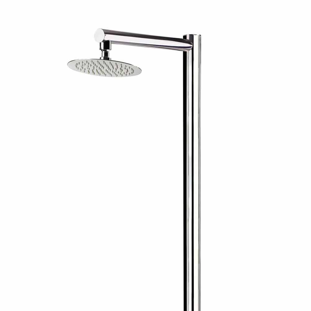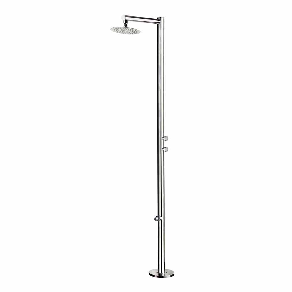 Utomhusdusch i stål med fottvätt och tidsinställda kranar Tillverkad i Italien.