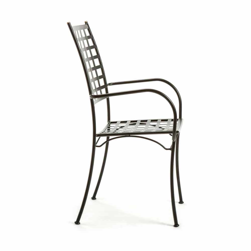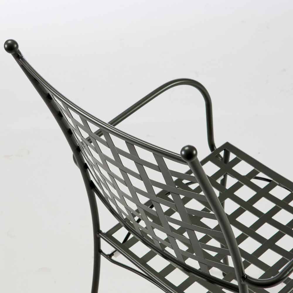 Utomhusfåtölj i pulverlackerat galvaniserat järn med stapelbara armstöd. Tillverkad i Italien, 4 stycken.