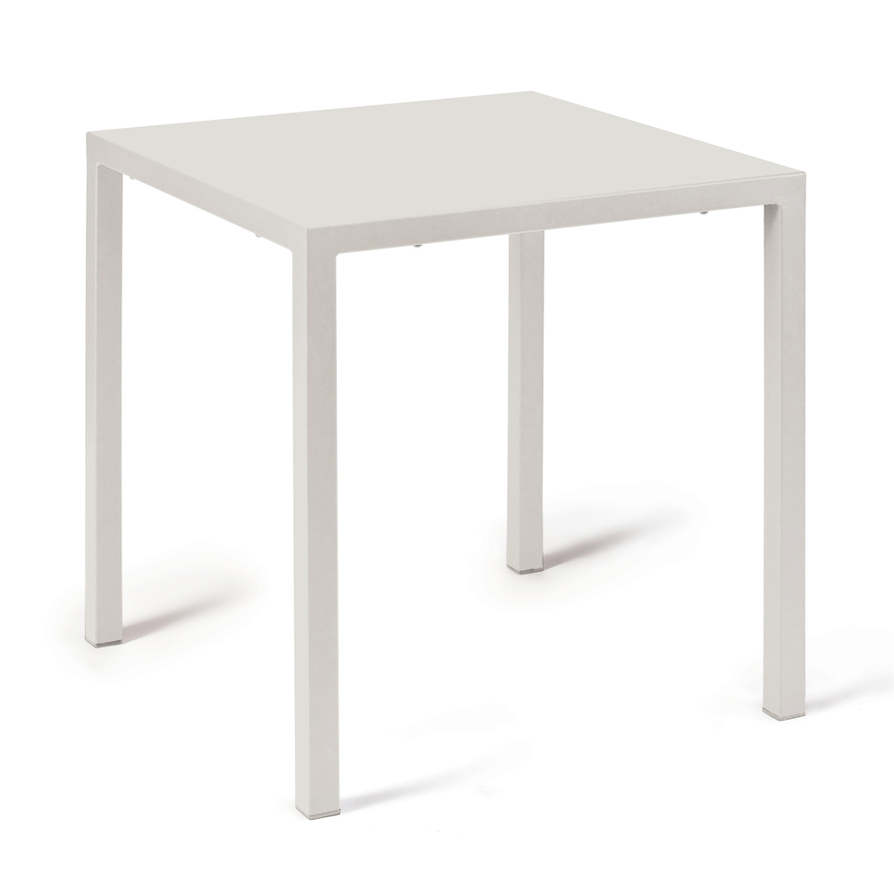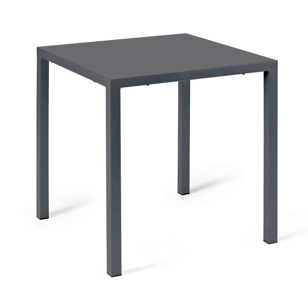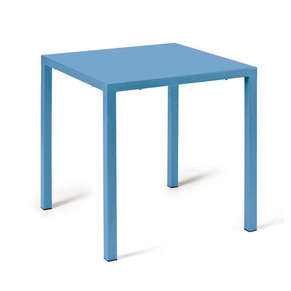 Stapelbart och självnivellerande matbord för utomhusbruk . Tillverkat i Italien, helt tillverkat av galvaniserat stål med fyrkantiga ben och 4 vanliga fötter.