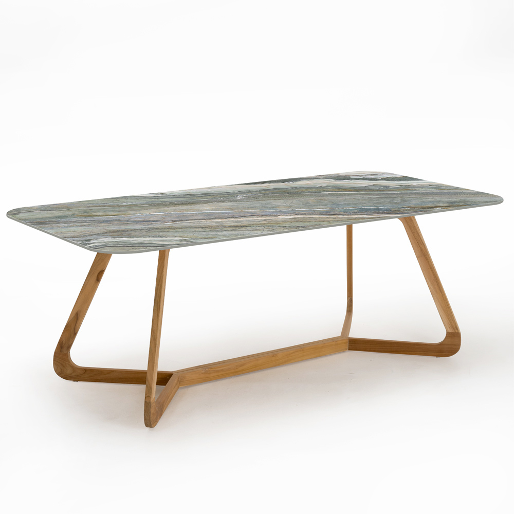 Rektangulärt trädgårdsbord i trä och keramik, Tillverkat i Italien