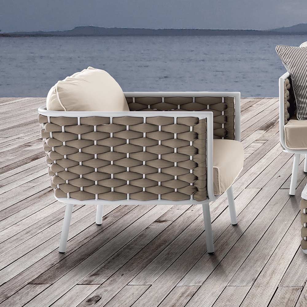 Den här fåtöljen är lätthanterlig och stark men har samtidigt en ren design. Dess moderna stil ger den en stark karaktär som gör den perfekt för att inreda utomhusutrymmen både i privat- och kontraktsmiljöer.