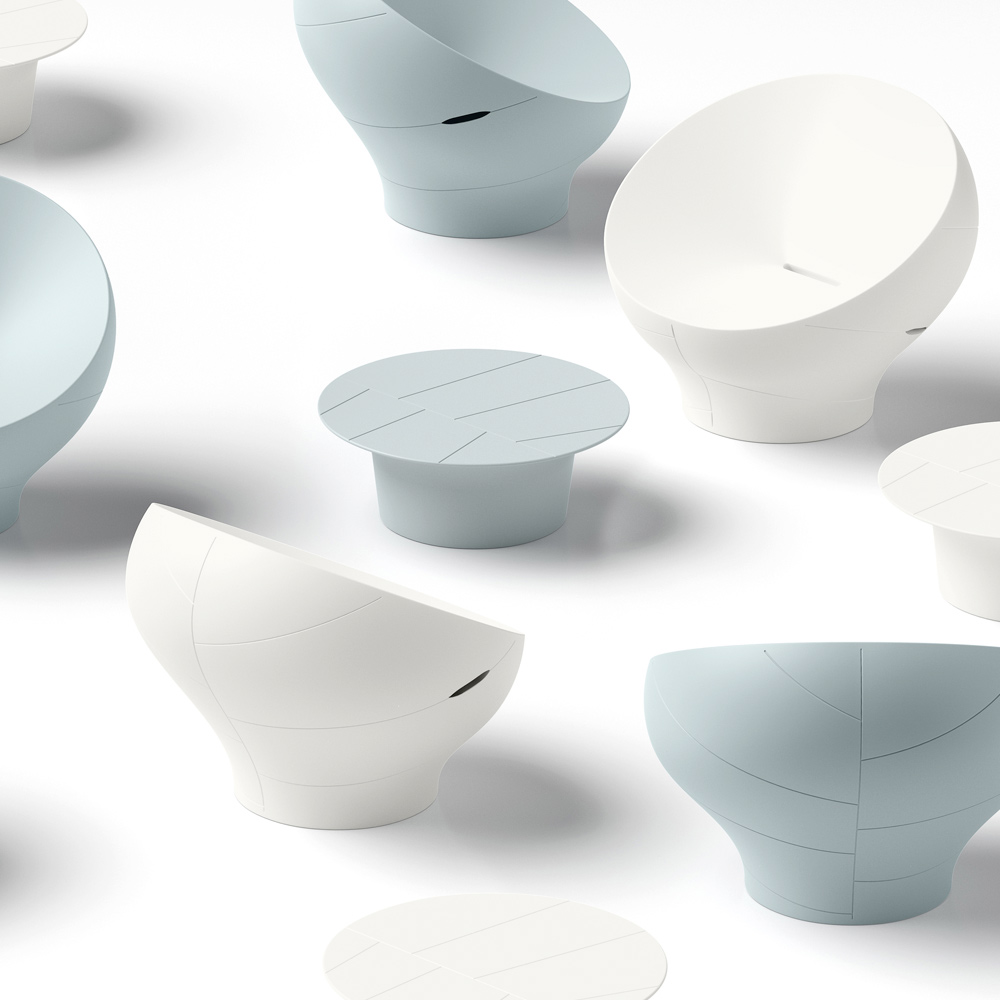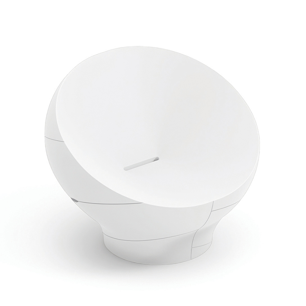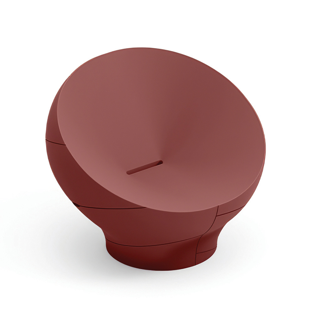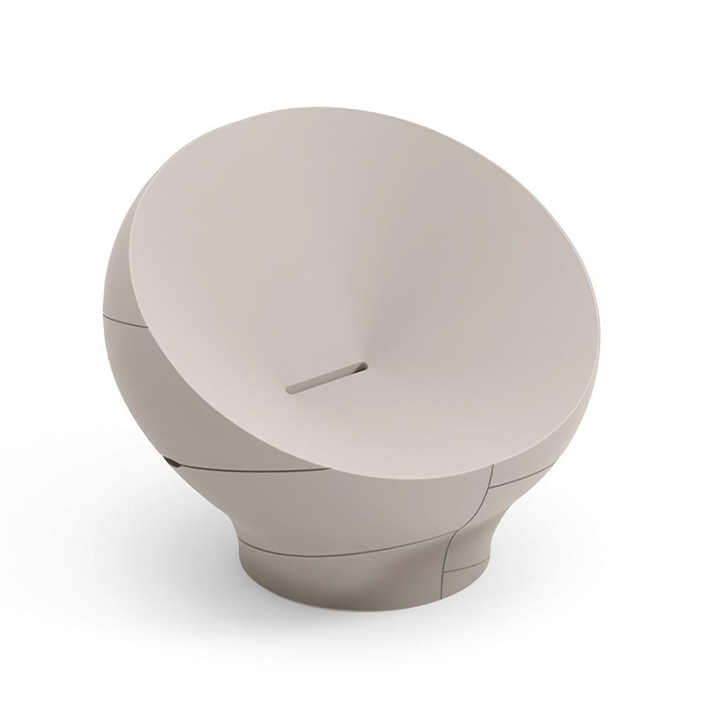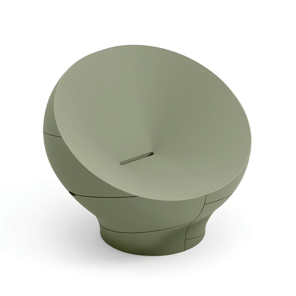 Denna fåtölj utmärker sig med sina mjuka, omslutande linjer , inspirerade av naturliga former som skapar en harmonisk och modern visuell effekt. Den kompakta, flytande monoblockstrukturen ger karaktär till utrymmen samtidigt som den bibehåller en enkel och elegant estetik.