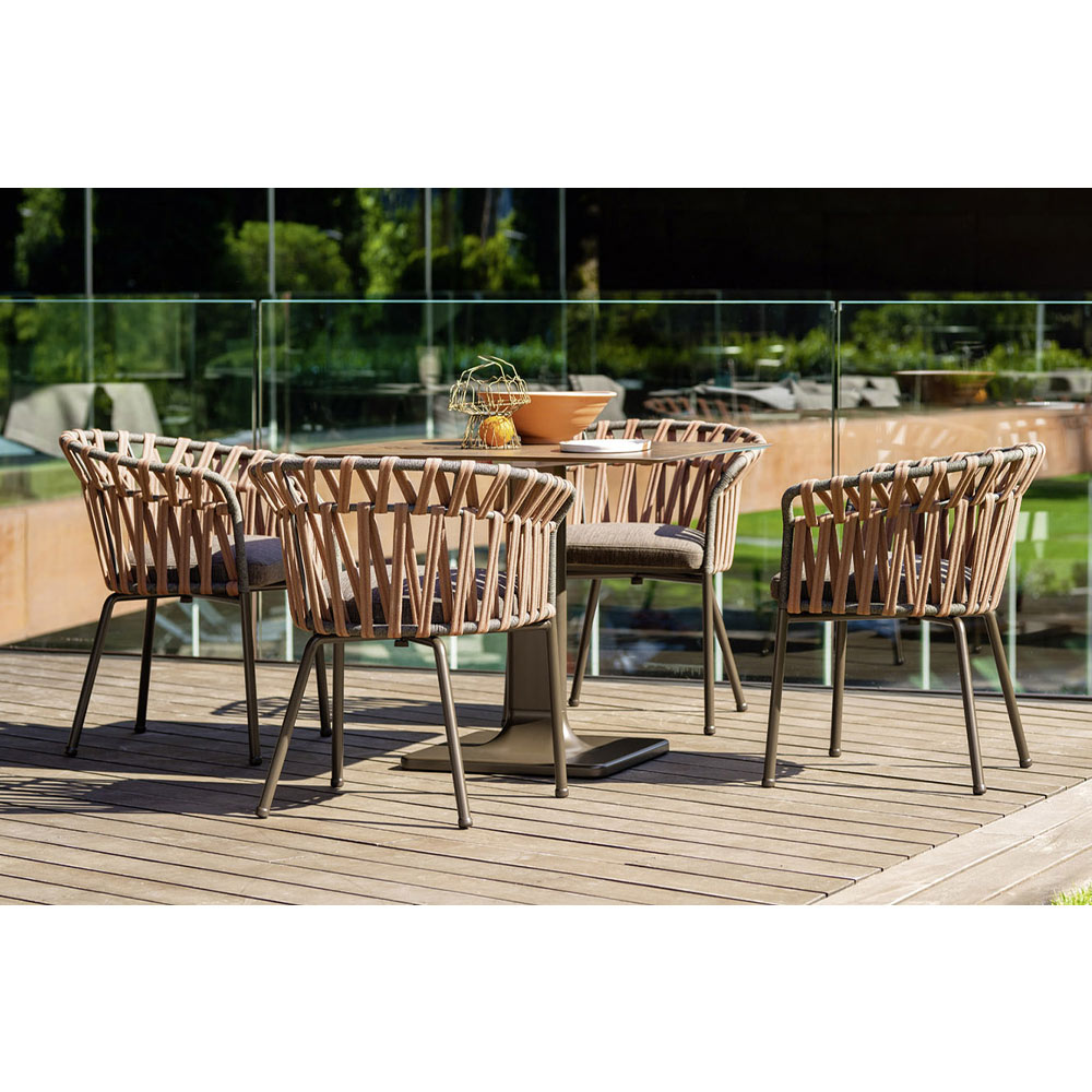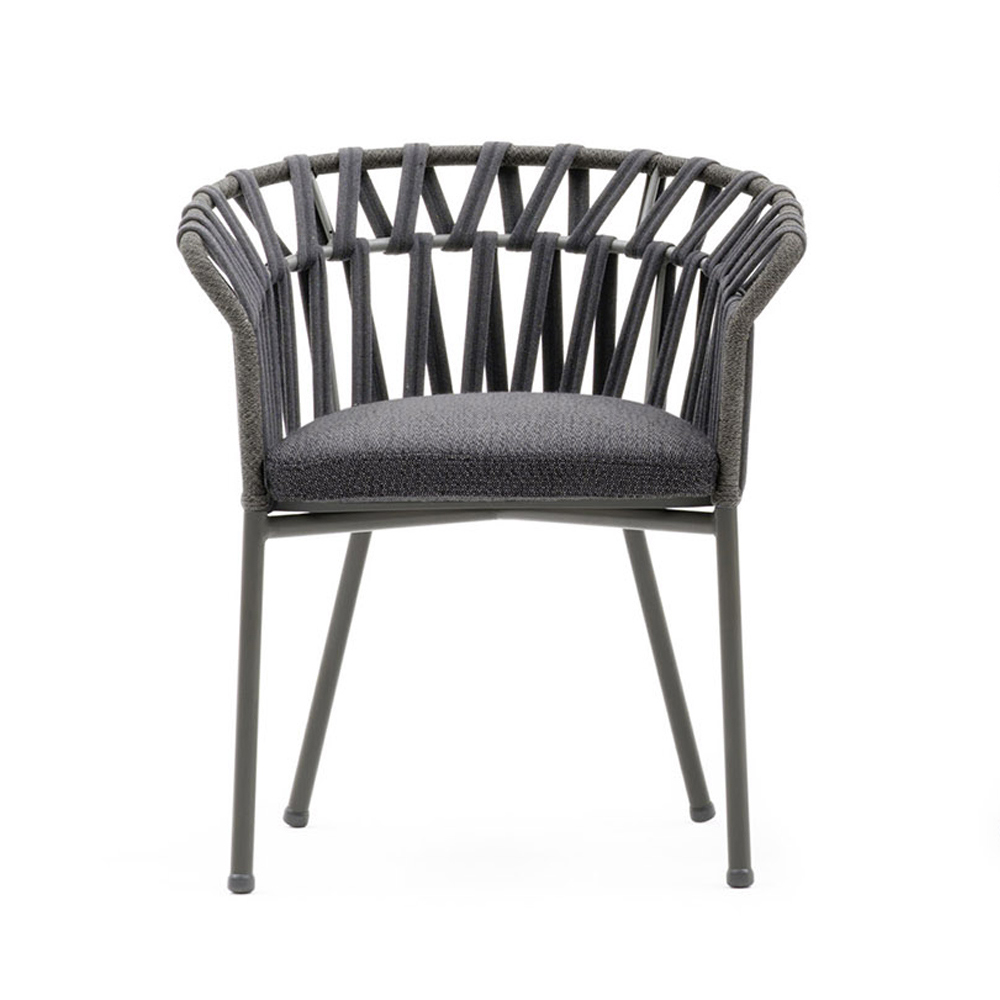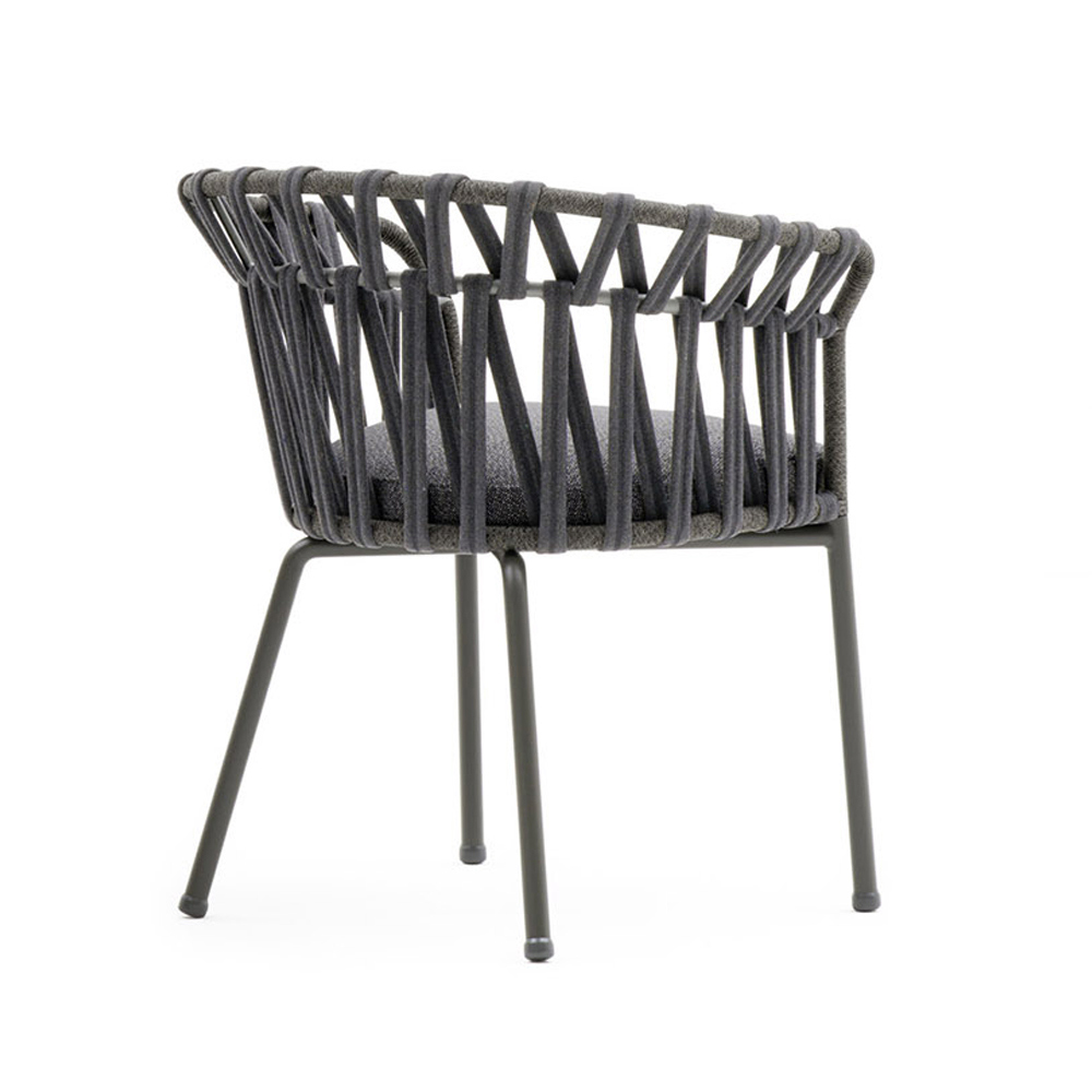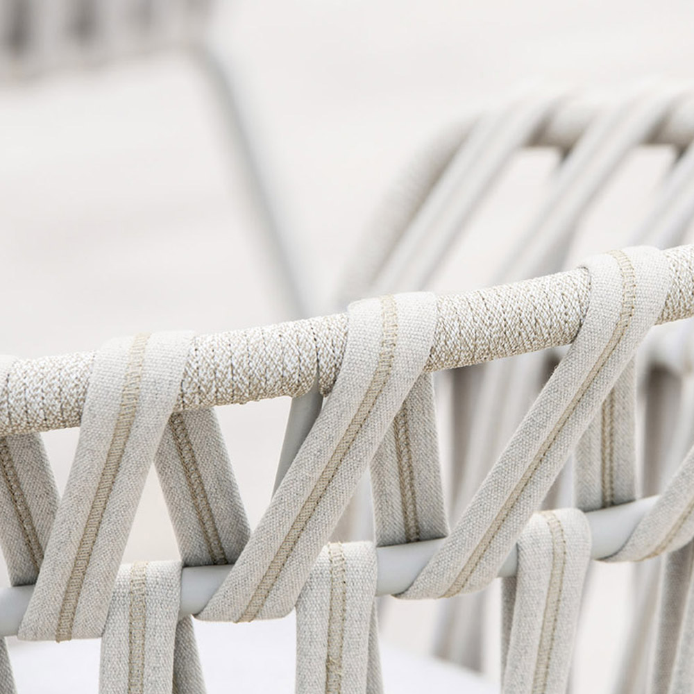 Utomhusfåtölj med vävt ryggstöd och aluminiumfot, lyxvara.