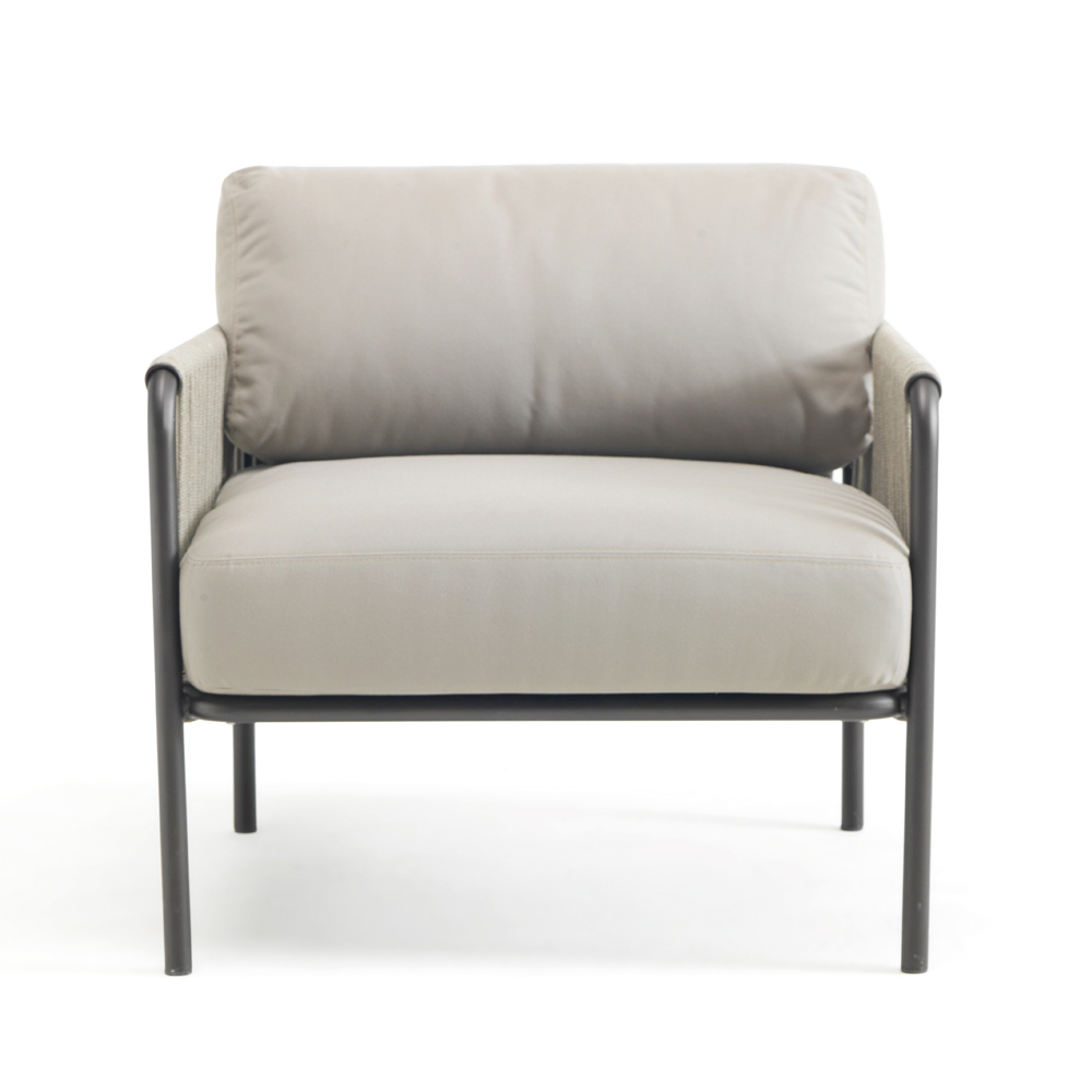 OBS : Fåtöljen, repet och kuddarna finns i en mängd olika färger. Armstöden är avtagbara.