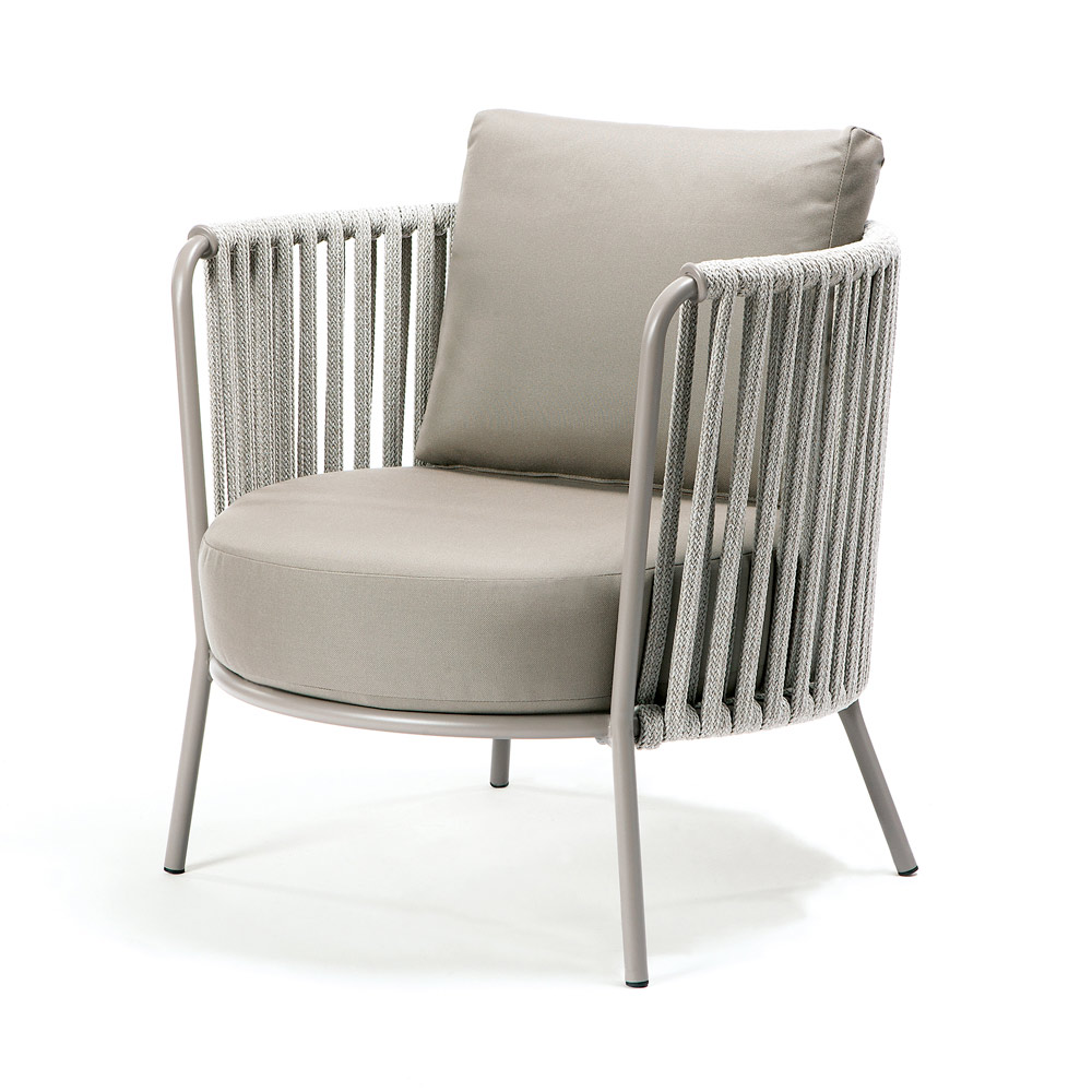 Utomhusfåtölj i stål och rep i olika storlekar med kuddar Tillverkad i Italien.