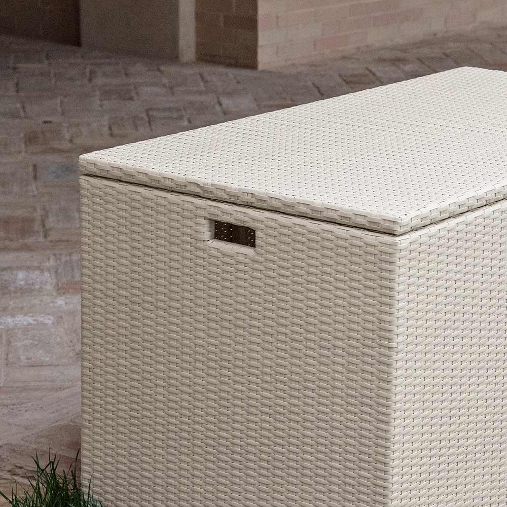 raffinerad , utmärkt för förvaring av kuddar, handdukar, redskap och andra tillbehör som stör din trädgård eller veranda.