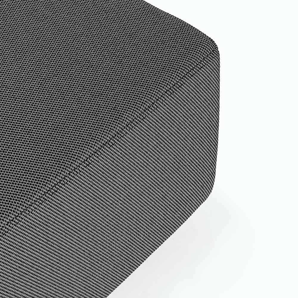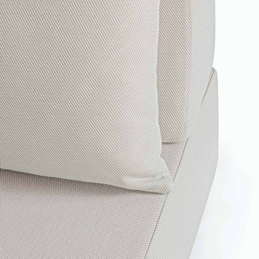 Sitsar, ryggar och kuddar med avtagbart lock i olefintyg för utomhusbruk (100% polypropylen, 285 g / m2), vattenavvisande och resistent mot UV-strålar (grad 7), inre vattentätt med tygbeläggning (polyuretan). Polsterstol av polyuretanskum (38 kg / m3), ryggstöd (20 kg / m3).