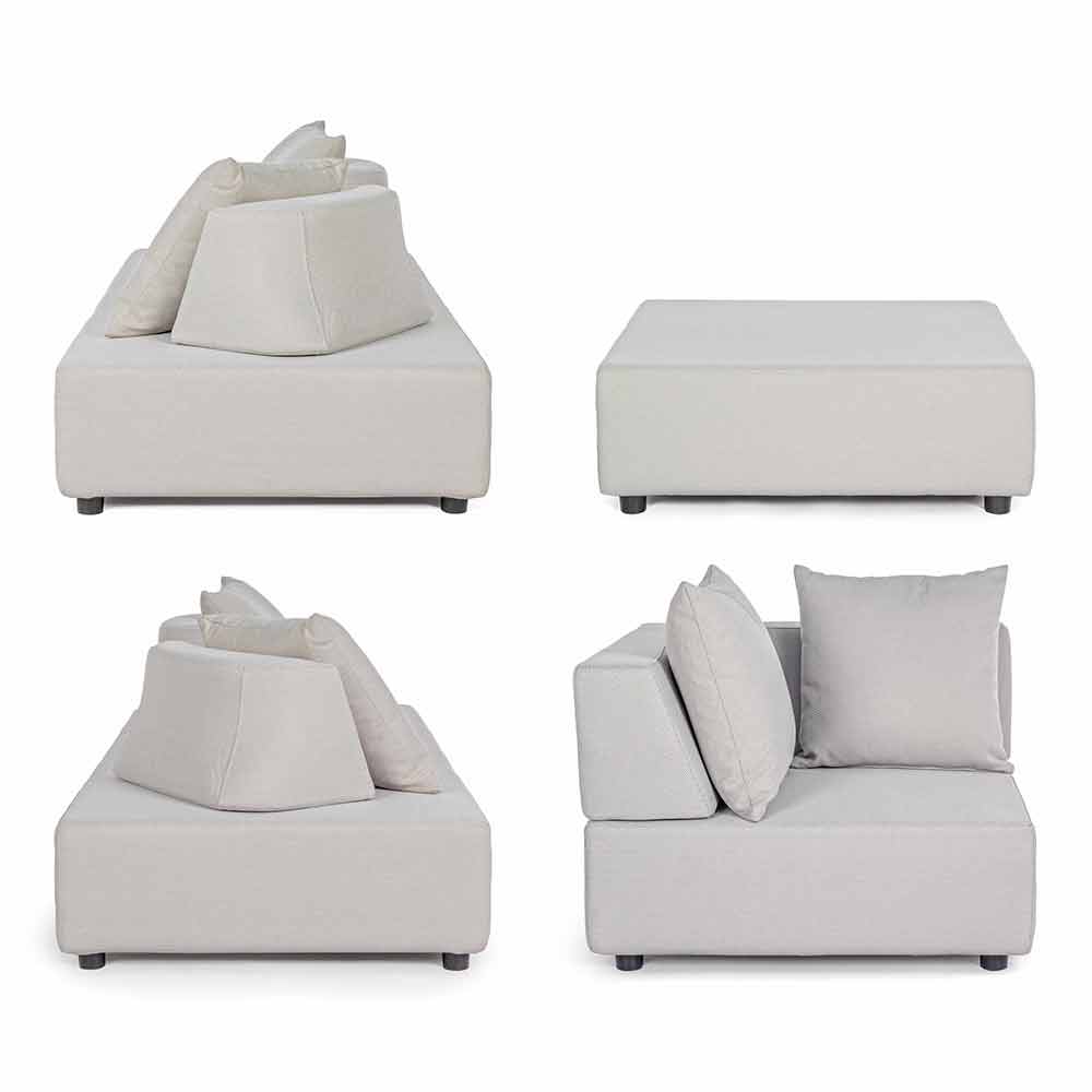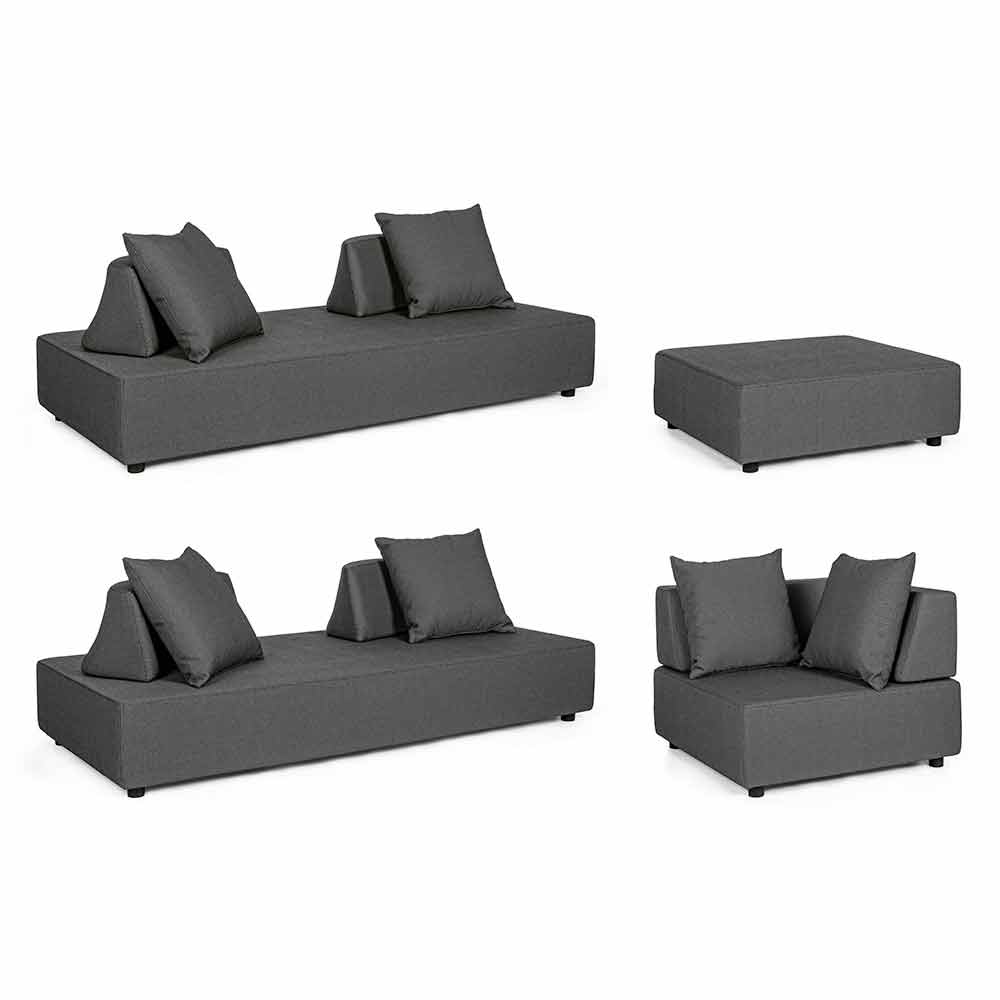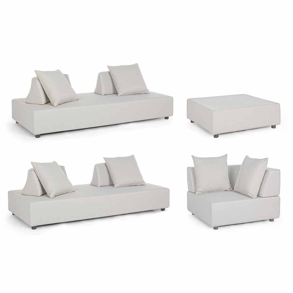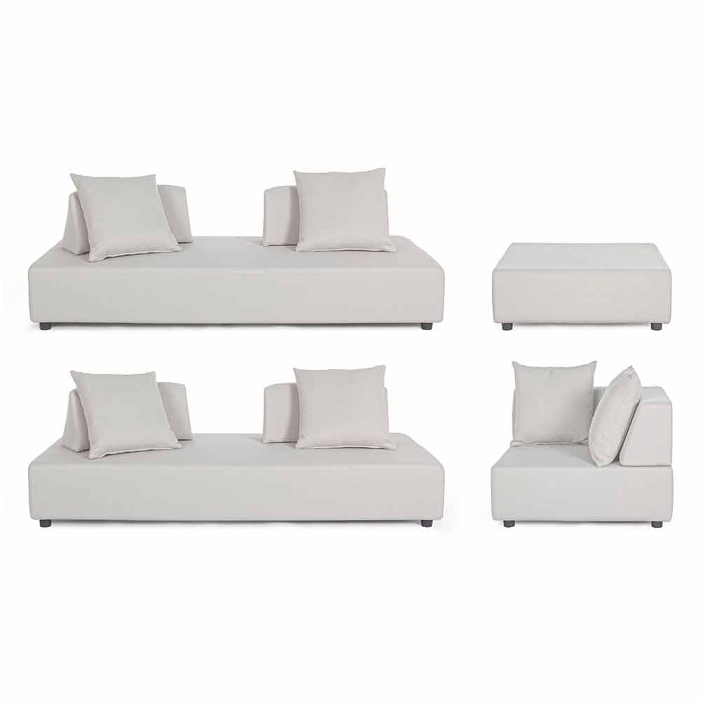 Sammansättning av soffor och osmann med aluminiumstruktur; avtagbara ryggar med stålkonstruktion, varmförzinkad och pulverlackerad (polyester).