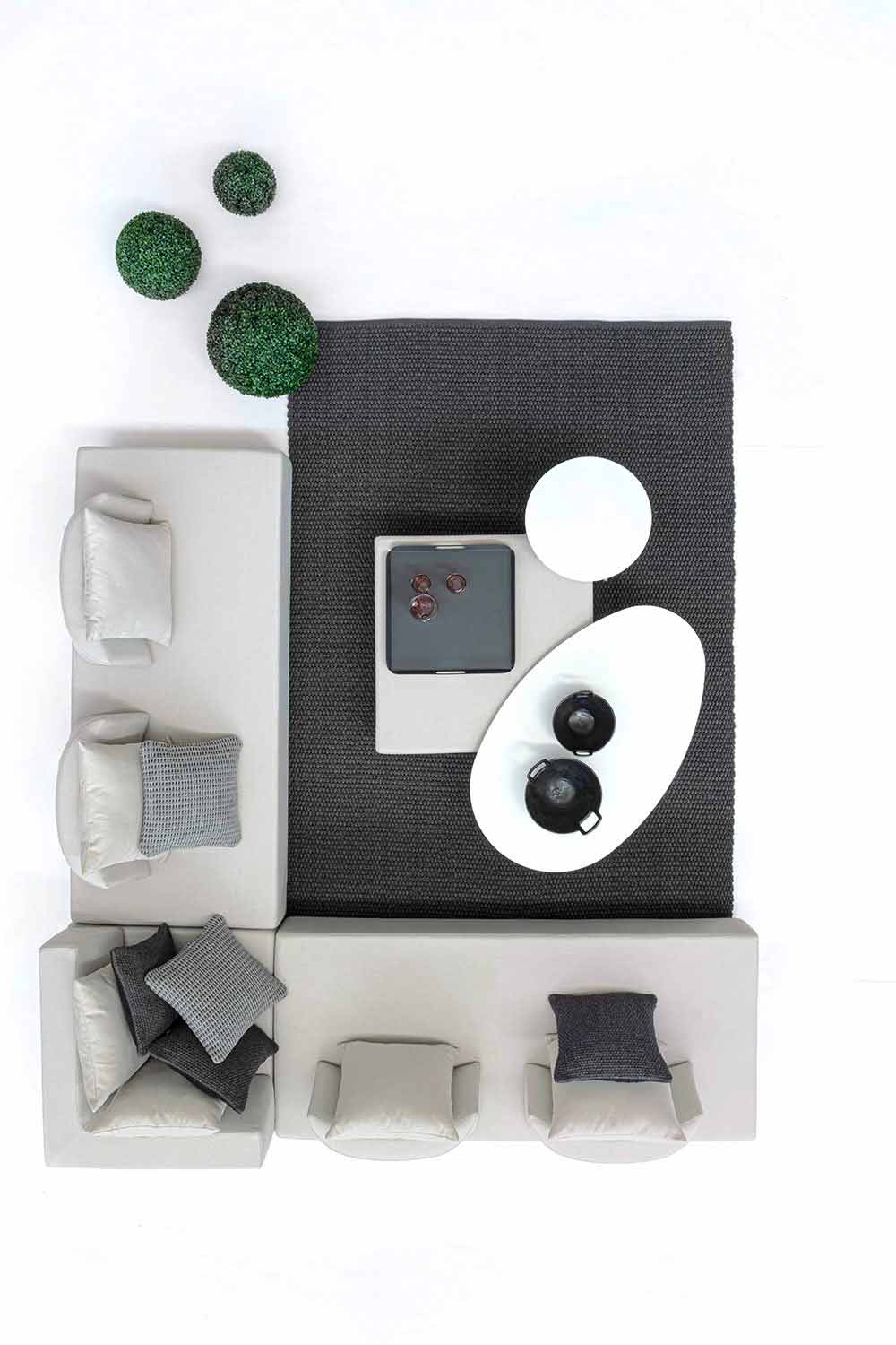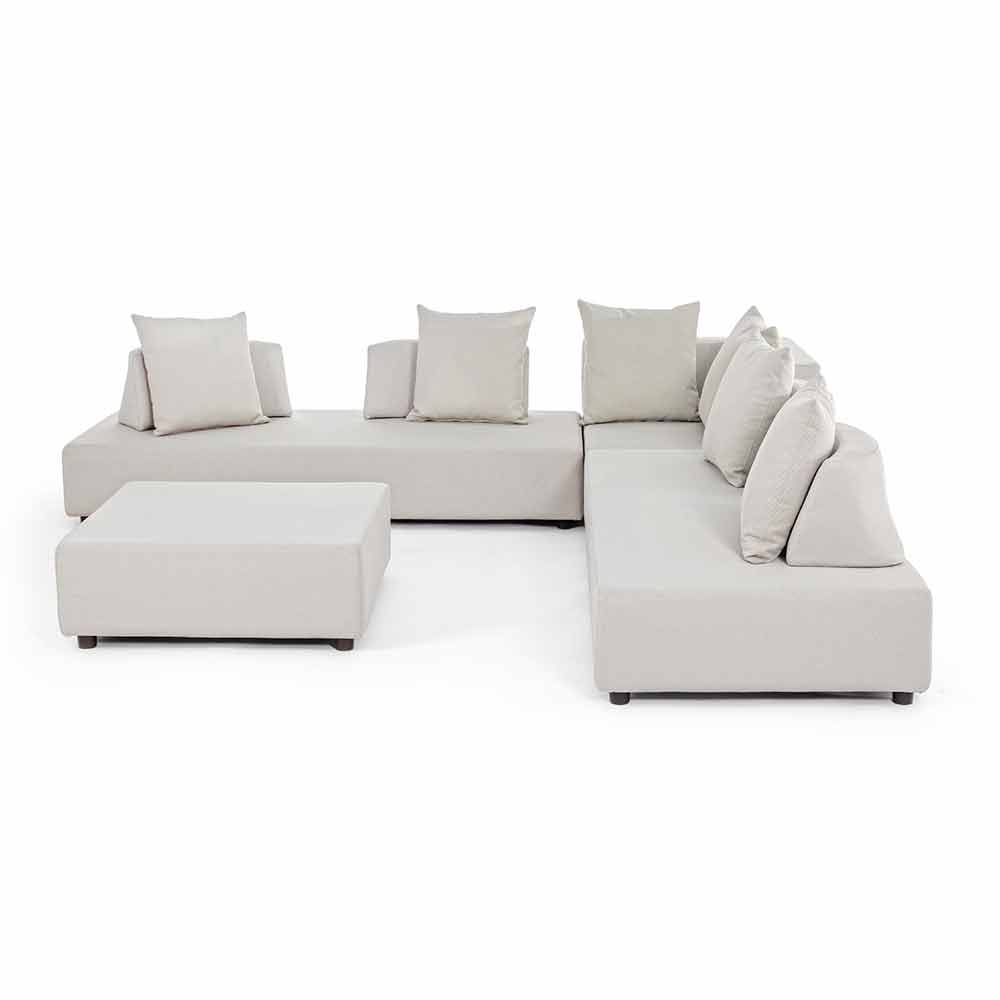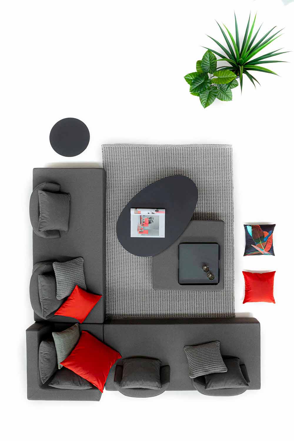 Sammansättning av soffor och osmann med aluminiumstruktur; avtagbara ryggar med stålkonstruktion, varmförzinkad och pulverlackerad (polyester).