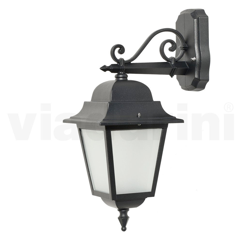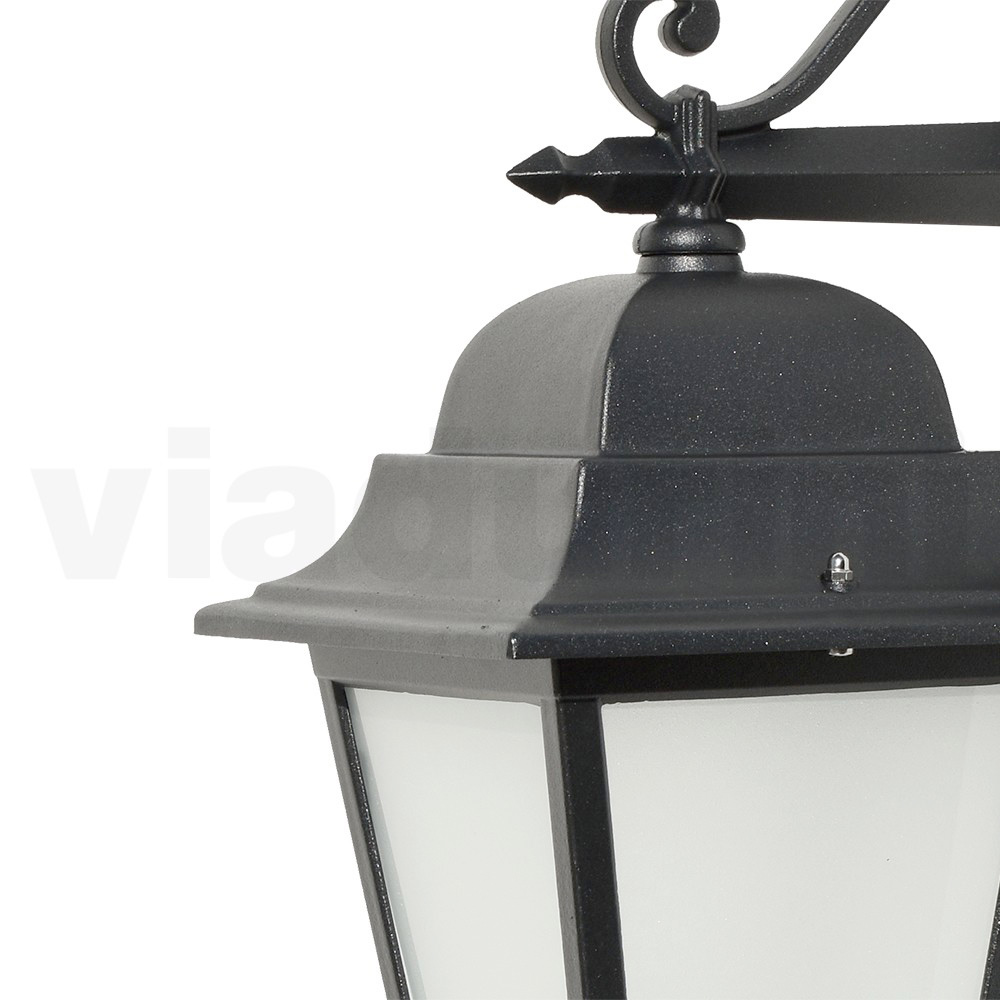 Trädgårdslampa tillverkad med antracitfinish formgjuten aluminiumstruktur och sandblästrad glasdiffusor , helt Made in Italy.