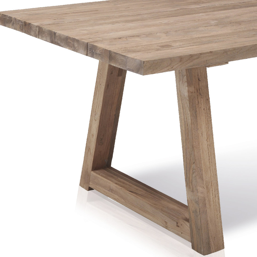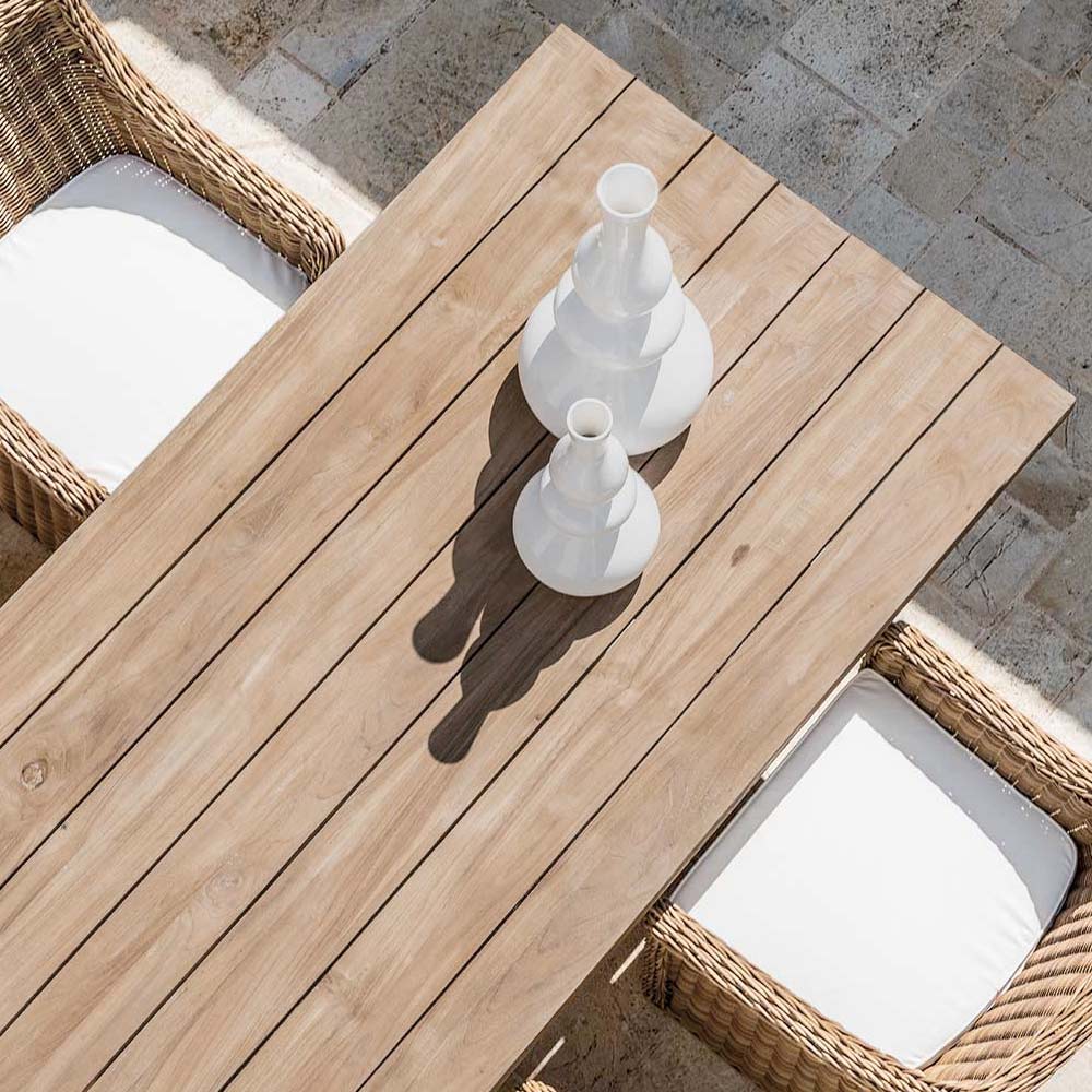 Trädgårdsmatbord tillverkat av återvunnet teak, helt tillverkat i Italien. Detta bord lämpar sig för alla utomhusmiljöer, från vardagsrummet, till matsalen och vid poolen tack vare materialet som används för dess konstruktion som är resistent mot atmosfäriska ämnen. Dess enkla och linjära finish gör bordet till en originell idé för alla som vill inreda sitt uteutrymme med smak och stil, utan att göra avkall på funktionalitet och praktiska egenskaper.