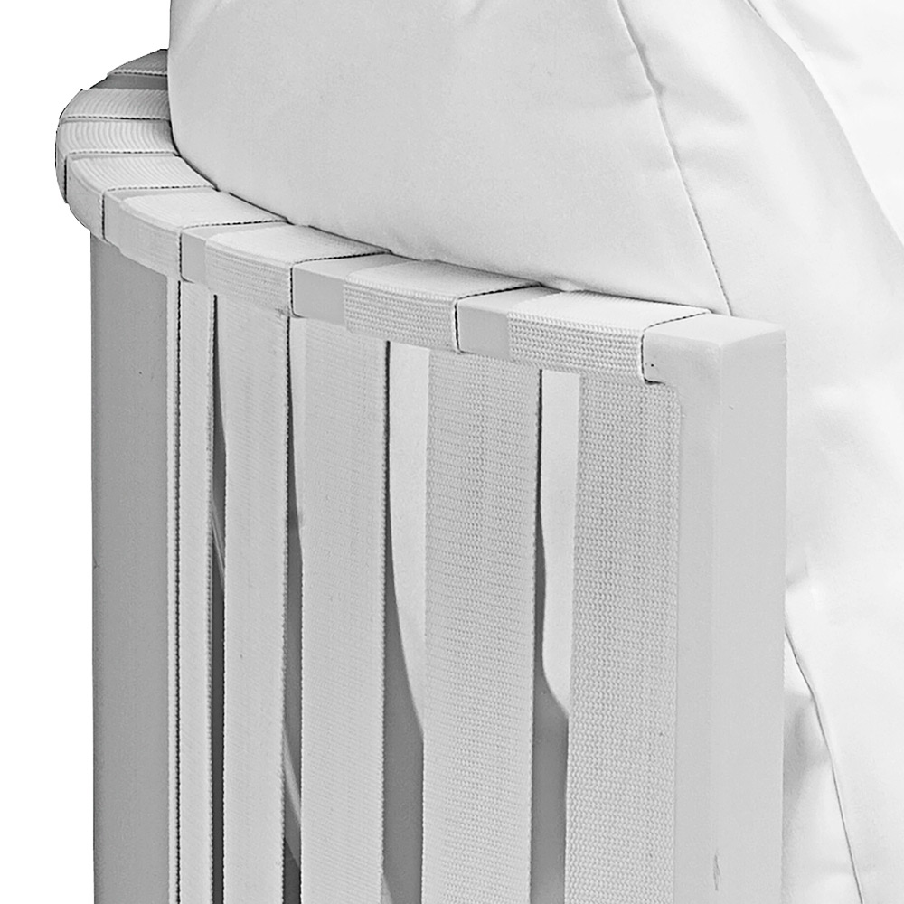 utomhussoffa kännetecknas av växlingen av fulla och tomma utrymmen som skapar ett ljust och modernt utseende.