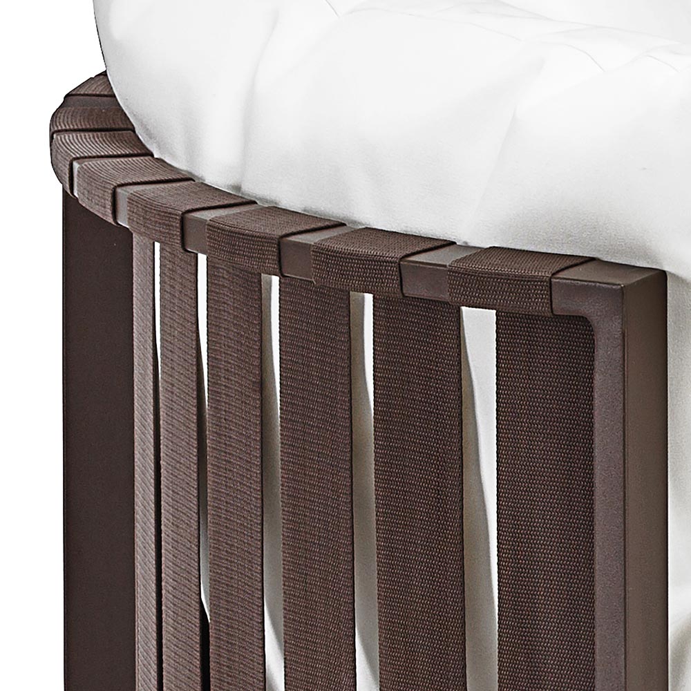 Lyxig design trädgårdssoffa i aluminium och rep med tygkuddar i olika utföranden.