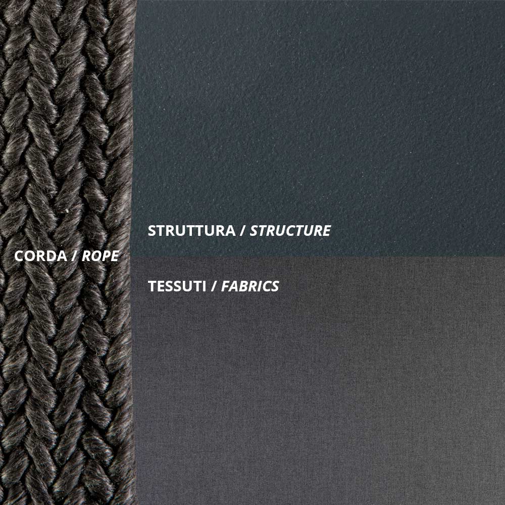 motståndskraft mot korrosiva atmosfäriska ämnen, medan repet är motståndskraftigt mot klor och solstrålar samt mögelskyddande. Dynorna är tillverkade av ett material som är resistent mot UV-strålar och vatten och som behåller färgen länge.