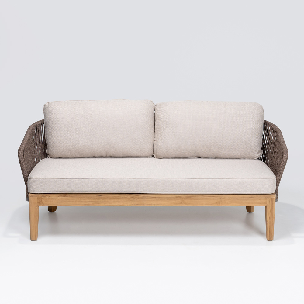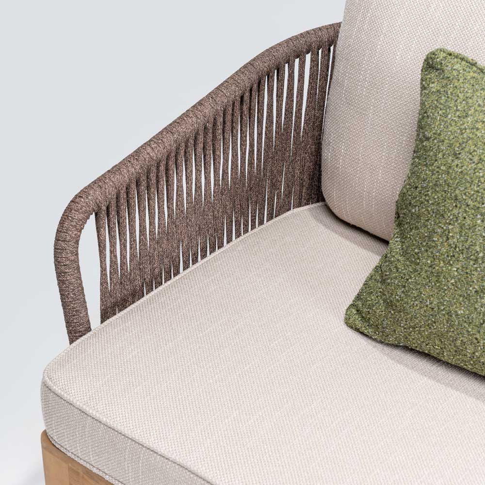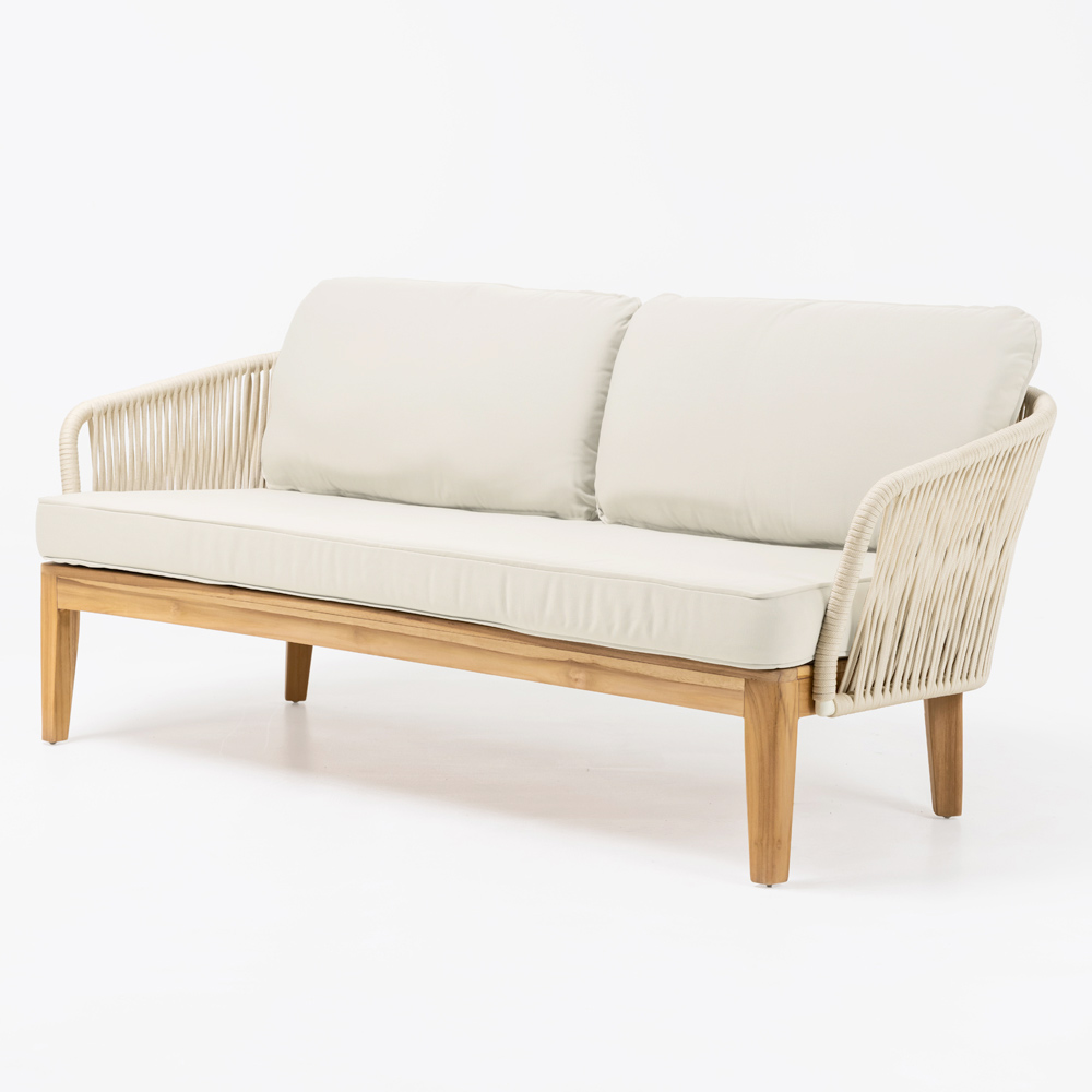 delikata linjer är perfekt för att ge värme till utomhusmiljöer tack vare den tidlösa stilen hos teakträ. Kuddar till sits och ryggstöd ingår.