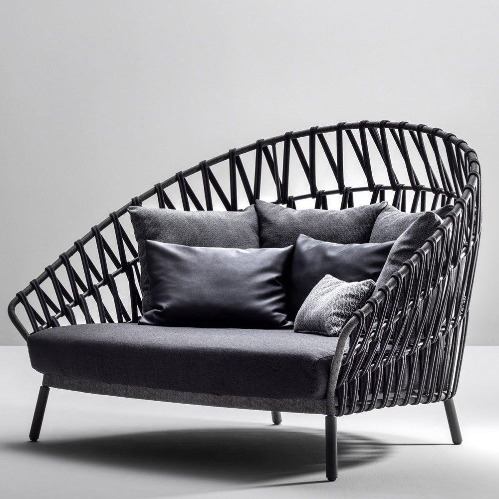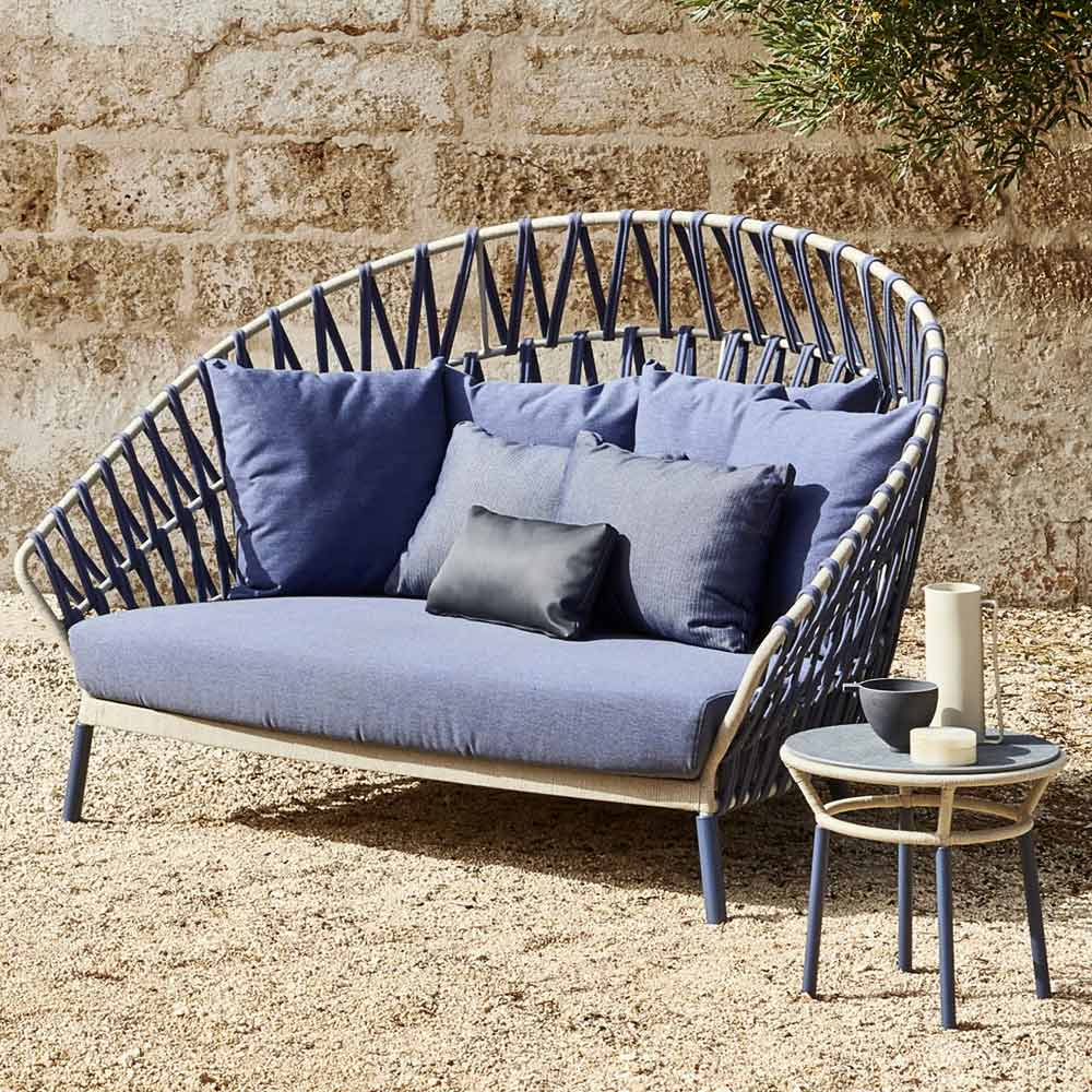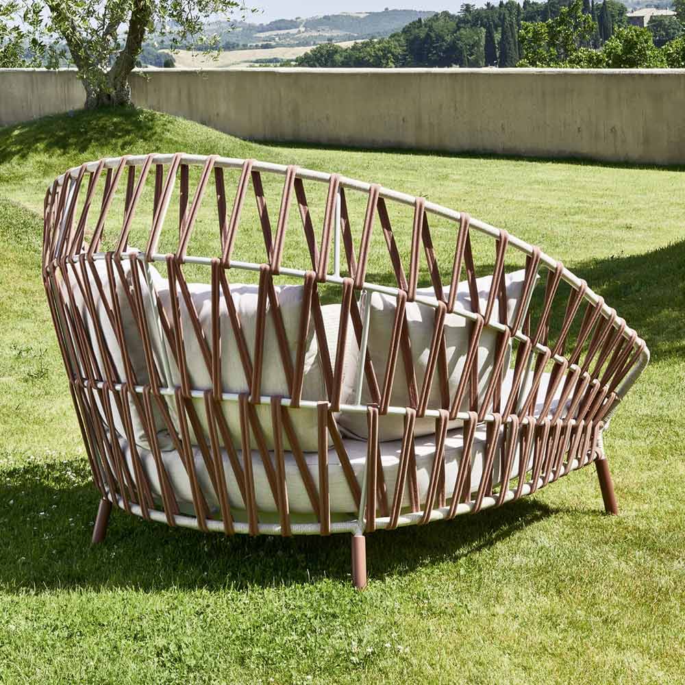 Trädgårdssoffa med målad aluminiumstruktur och vävt ryggstöd Tillverkad i Italien.