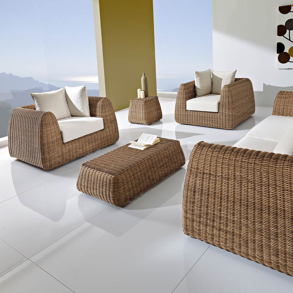 Den raffinerade designen, den mycket höga kvaliteten på materialen och dess slingrande former gör den perfekt för inredning och exteriör. Tack vare användningen av speciella material av hög kvalitet är detta utomhusbord inte rädd för dåligt väder och temperaturförändringar tack vare certifieringen av den vävda fibern.