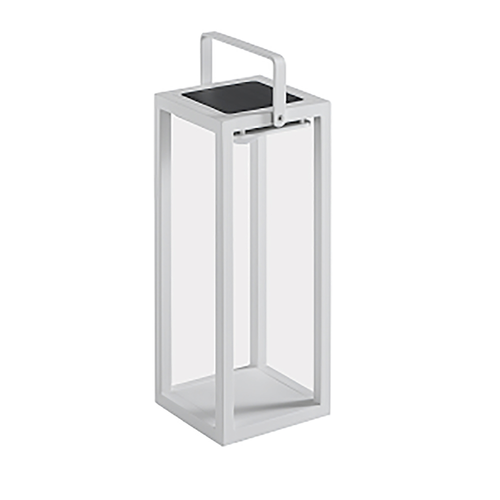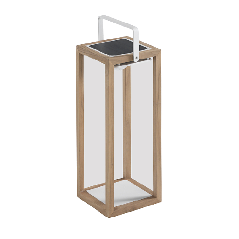 målad aluminium eller teak finns med vit struktur och vitt handtag eller med teakstruktur och vitt handtag. Ljuset från lyktan ges av