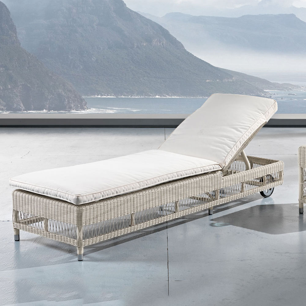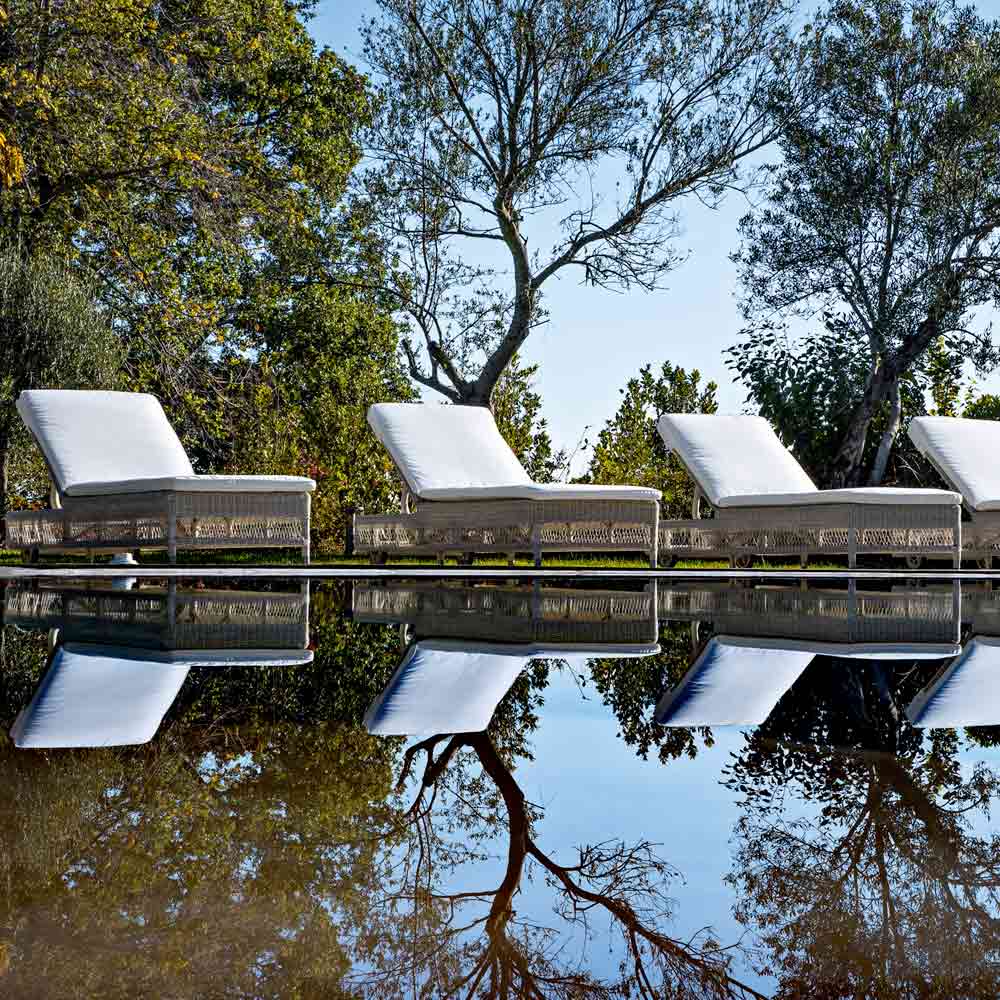 Den vävda stilen är raffinerad och delikat och tillsammans med den mycket höga kvaliteten på materialen och dess avgörande former gör denna solsäng perfekt för att inreda interiörer och exteriörer, både privata och kontraktsmiljöer som terrasser, verandor, trädgårdar men de hittar också en perfekt plats vid poolen.