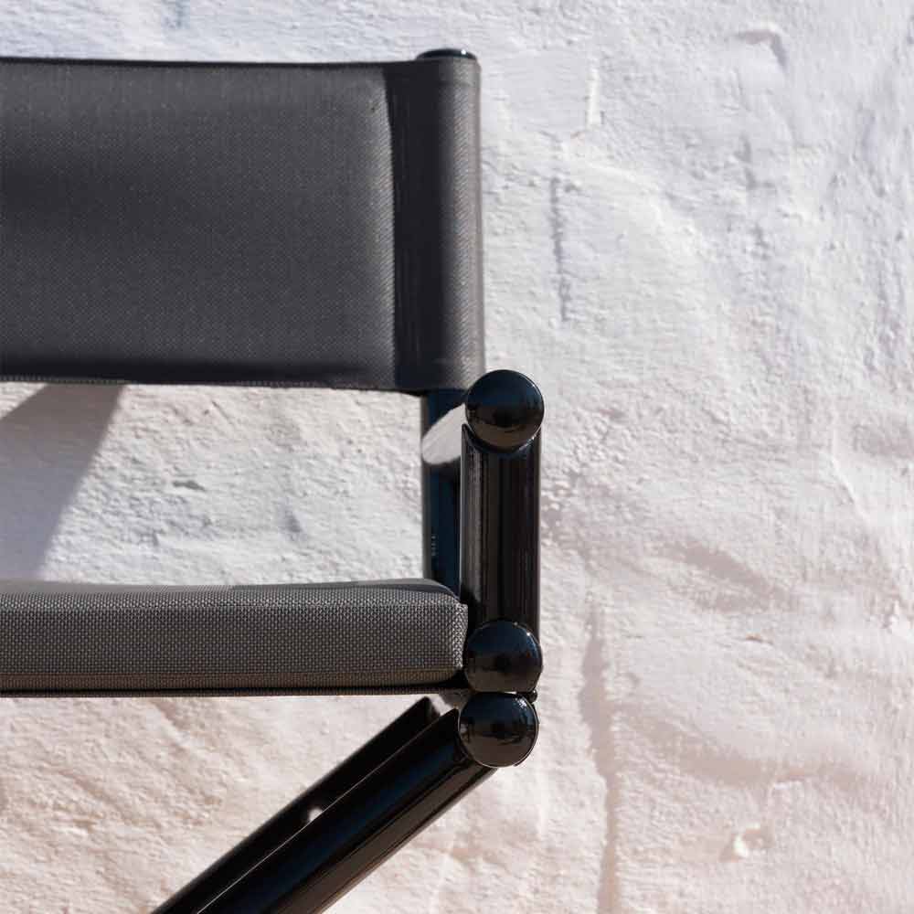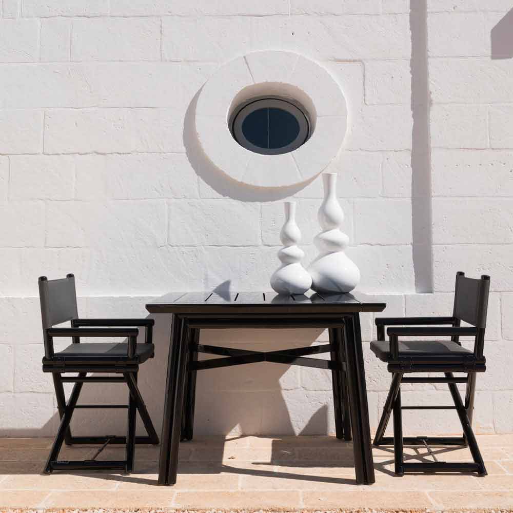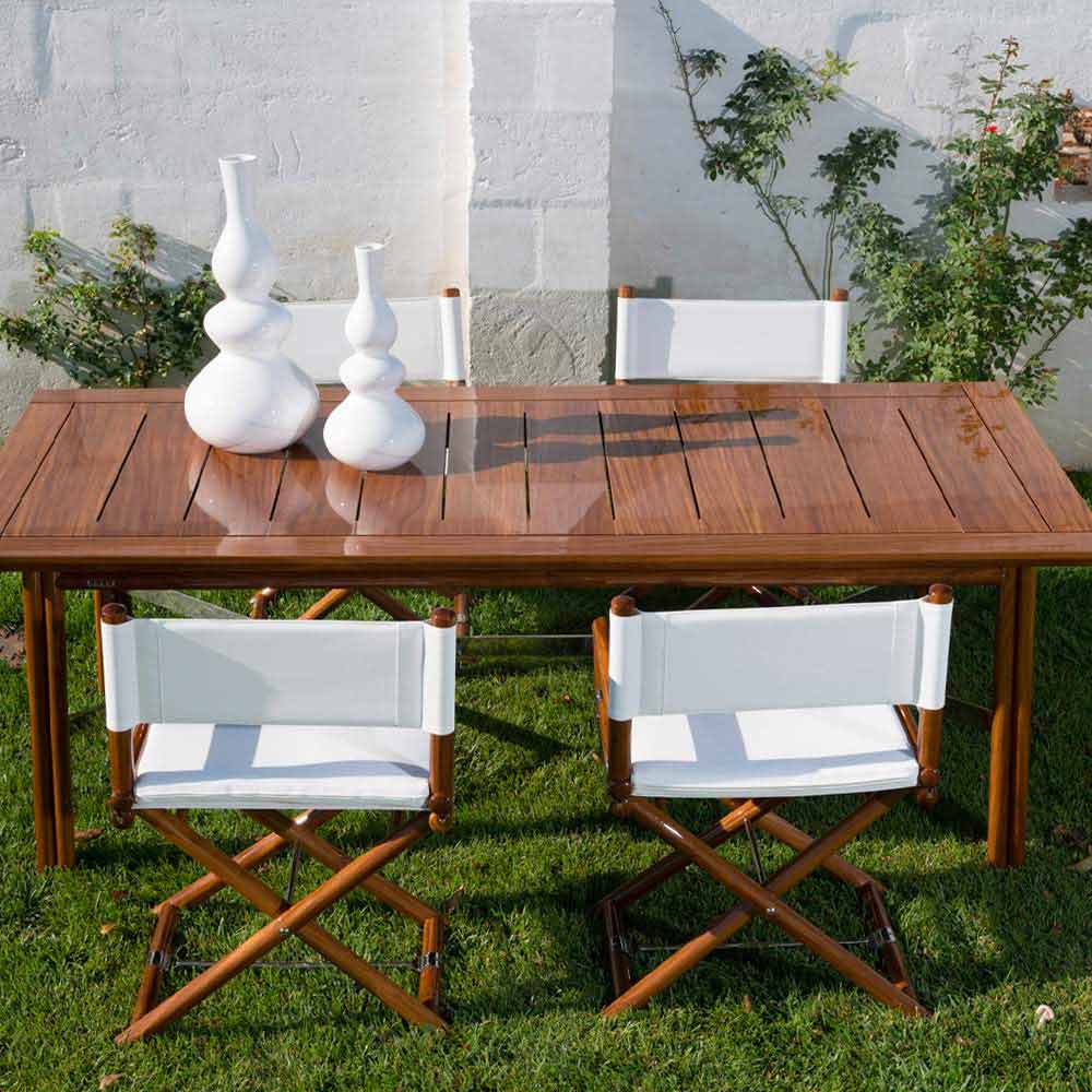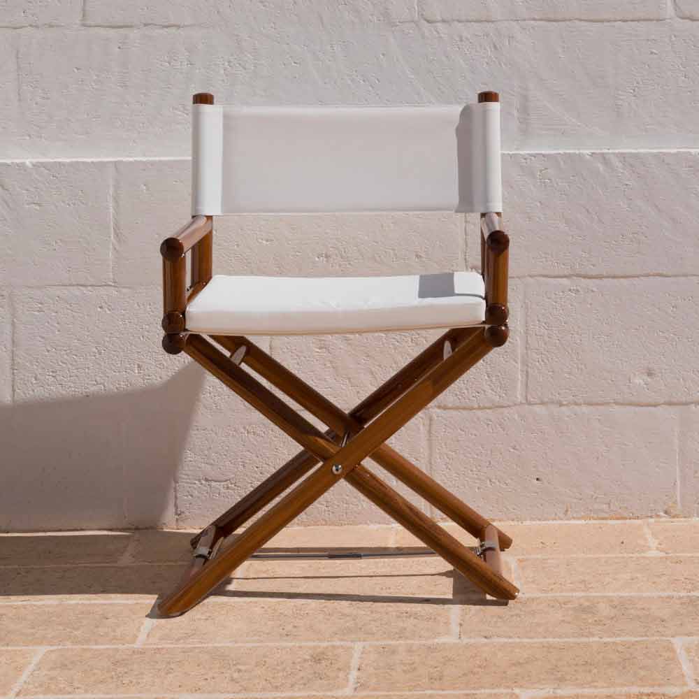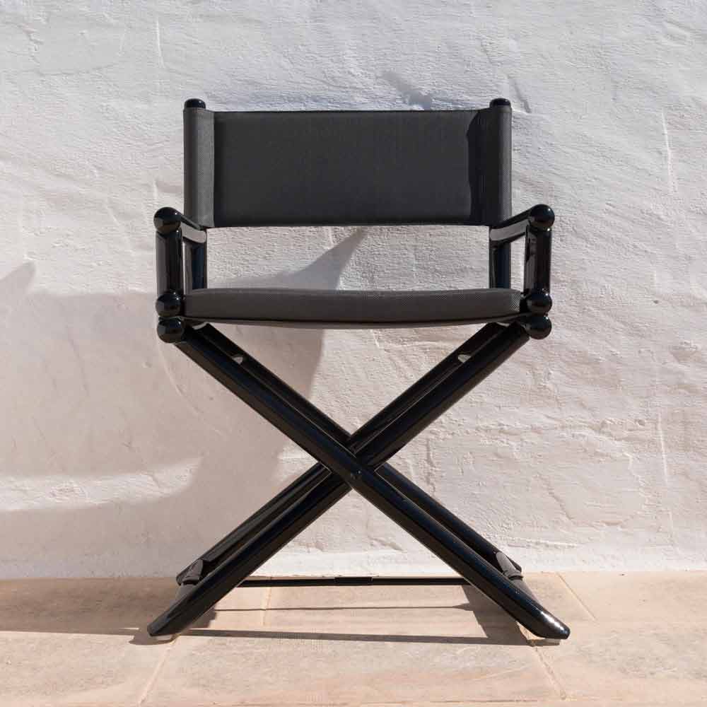 Fällbar regissörsstol utomhus i naturligt eller svart trä, lyx tillverkad i Italien.