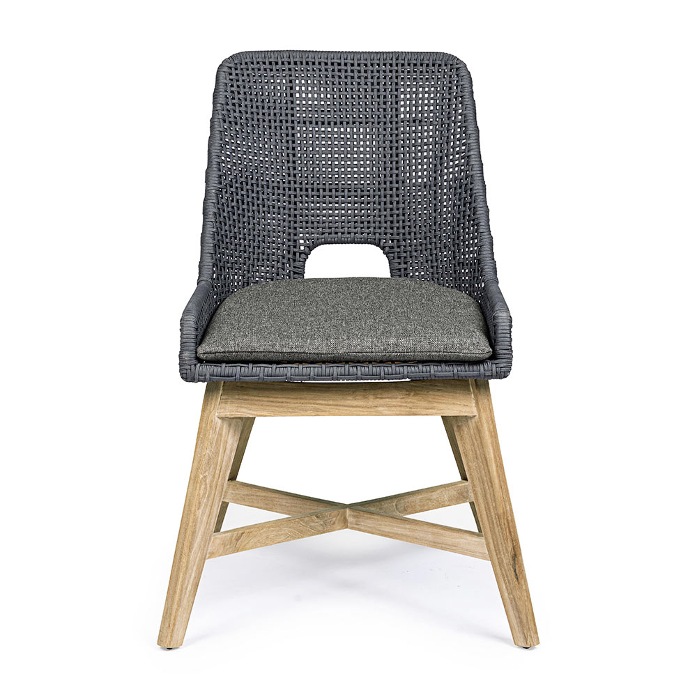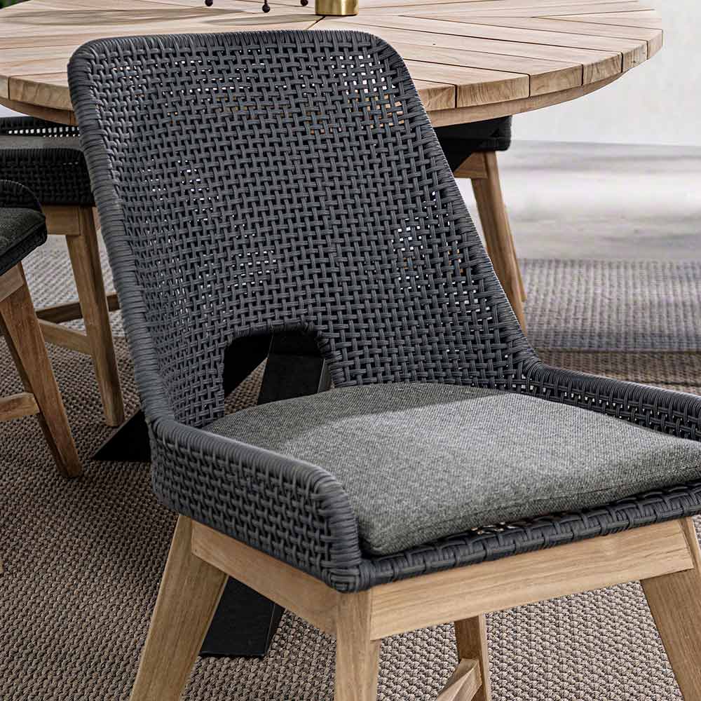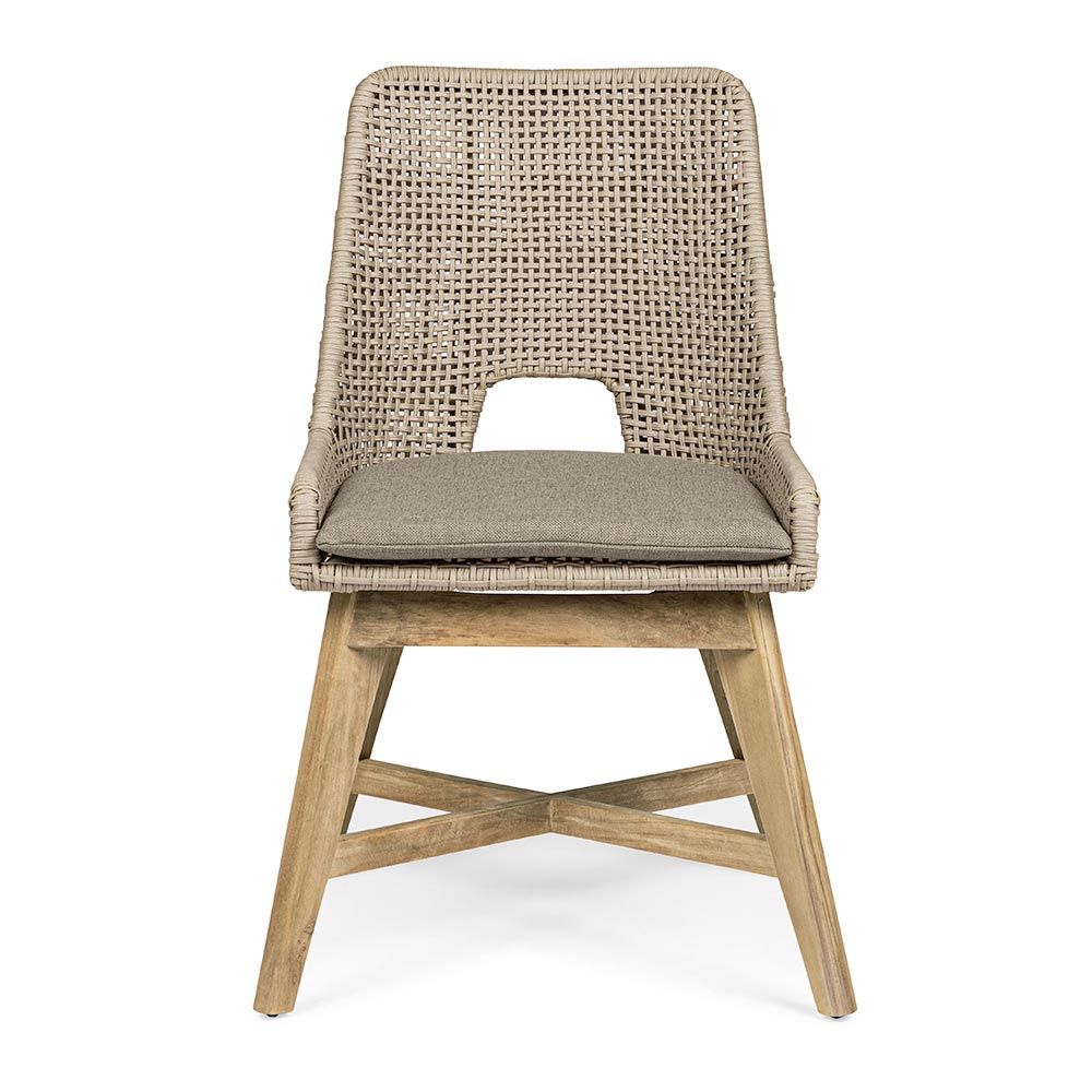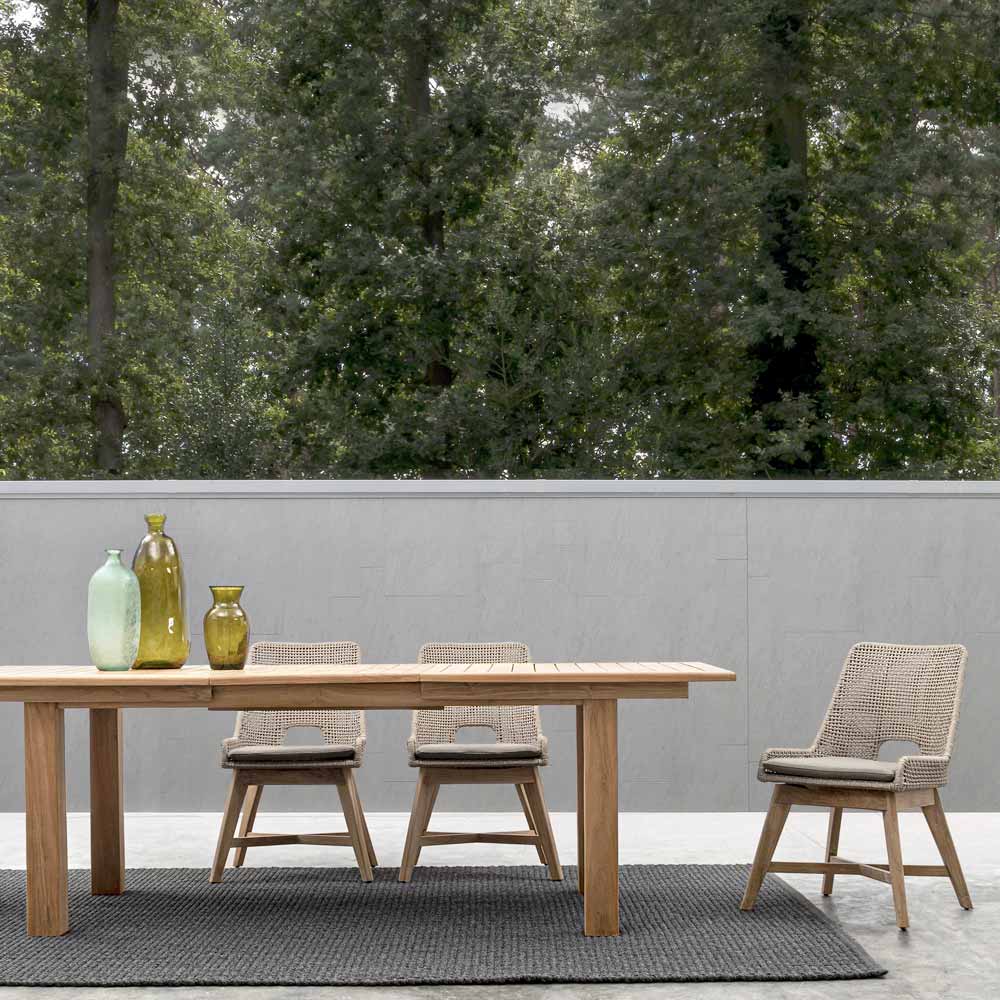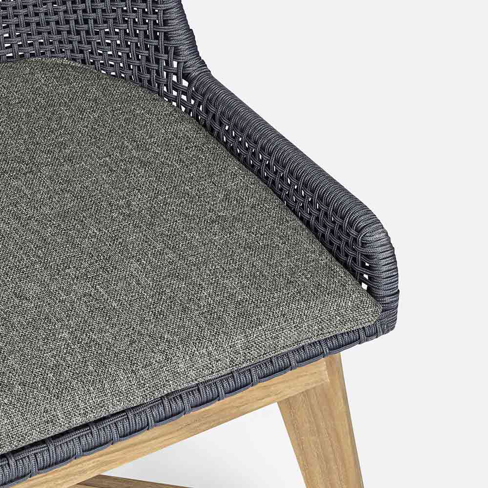 Utomhusstol med ben i teak och rep och tygstol, 2 st.