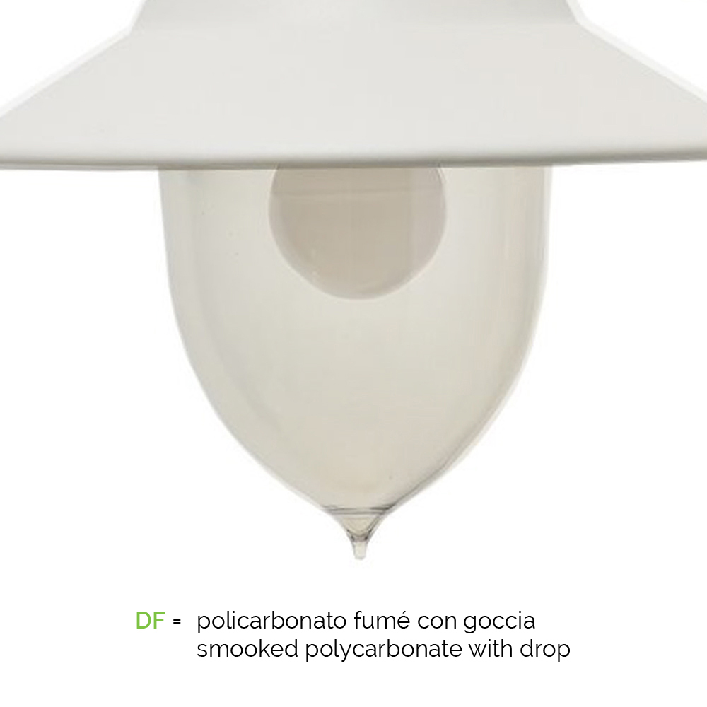 i polykarbonat komplett med skruvar i rostfritt stål. En produkt med en stark elegant personlighet som kännetecknas av en vintagestil som ökar dess unikhet och understryker dess raffinerade estetik. Idealisk för att möblera inhemska eller kontrakterade utomhusmiljöer som trädgårdar, verandor, alléer och gångvägar. De föreslagna färgnyanserna är strikt