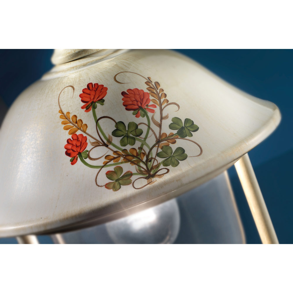 Denna utomhushängande lampa är helt tillverkad av aluminium dekorerad med handmålade blommor för en klassisk och harmonisk stil mellan form och färg.