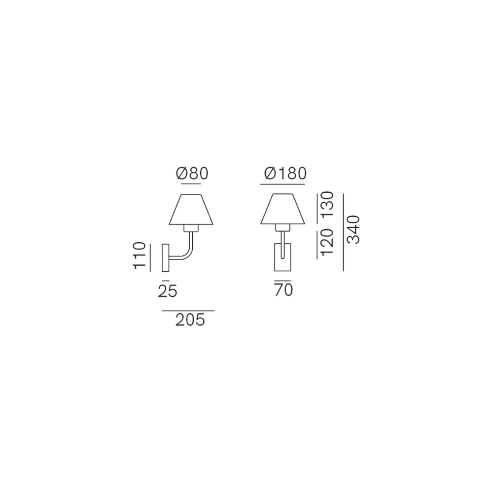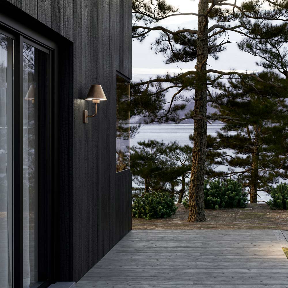 Made in Italy. Kollektionen av utomhuslampor föddes ur önskan att föra in inredningens egenskaper till produkter avsedda för utomhusbruk, för att skapa välkomnande och familjära atmosfärer även i det fria. Med linjer inspirerade av nordisk estetik är golv- eller vägglamporna gjorda av mässing och koppar.