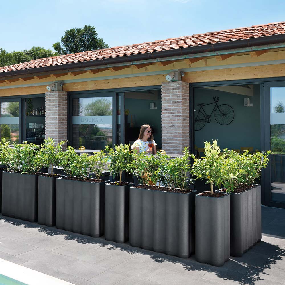 Tillgången på 7 olika färger och möjligheten att välja mellan den smala pelarformen och den bredare och rymligare gör denna utomhusvas idealisk för att avgränsa din uppfart, trädgård eller husfasad med en stark samtida stil.