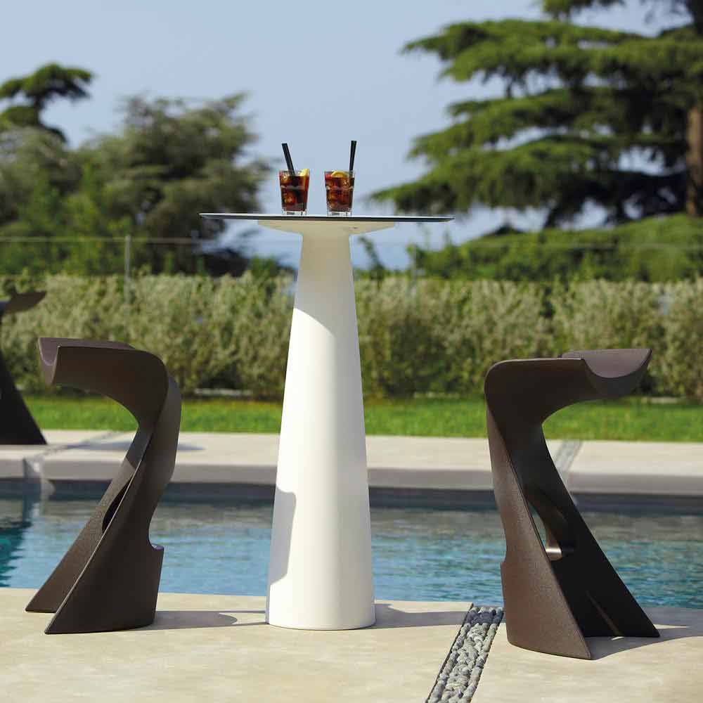 Koncord är en hög pall med en mycket speciell design och dynamiska linjer. Formerna på denna möbel gör den idealisk för att dekorera platser som barer, terrasser men även vardagsrum eller trädgårdar på ett spektakulärt sätt. En touch av gjord i italiensk stil som inte går obemärkt förbi och garanterar maximal komfort.