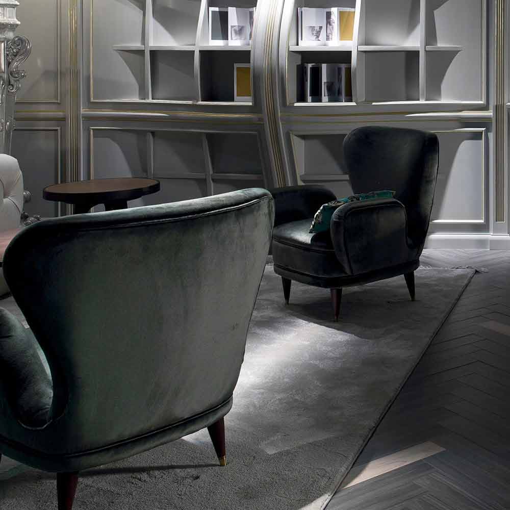 Möblerna i denna samling är gjorda av ett 'italienskt företag specialiserat på tillverkning av handgjorda lyxiga designermöbler. Skulpturala former som tar inspiration från klassiska, men rivistate på ett modernt sätt, är ledmotivet i hans prestationer. Den antika traditionen möbelsnickare och hantverk erfarenhet kombineras för att ge liv åt en rik variation av produktion där material och former är huvudpersoner: en samling av lyxiga möbler som svarar på de moderna bekvämligheter, samtidigt som den är modern funktionell, medan inte bryta sig loss från dyrbart arv av tradition.