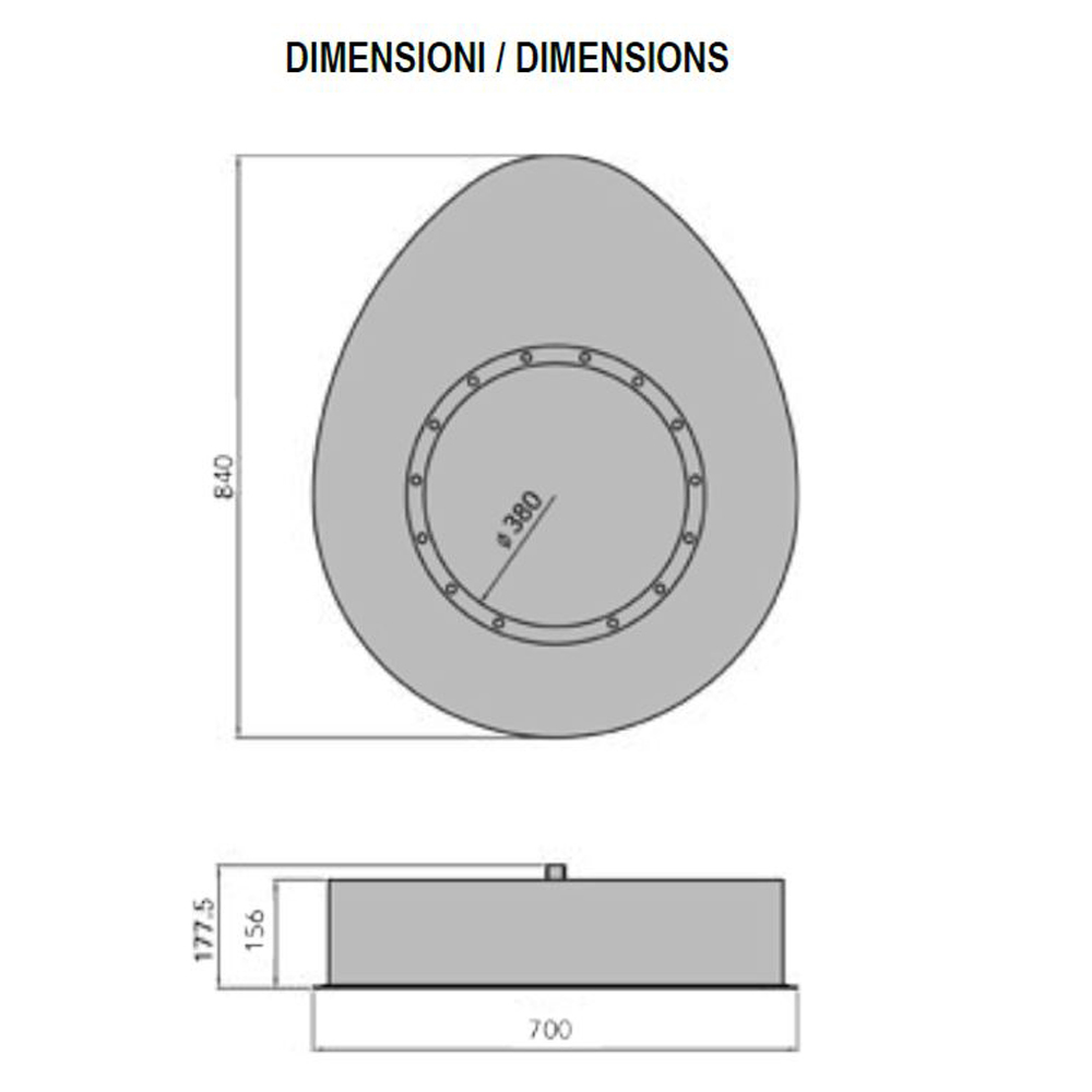 ovala designen kombinerar den väsentliga och cirkulära formen med det behagliga ljuset och värmen på eldstaden, vilket ger en idealisk möbel för att sprida intensivt psykofysiskt välbefinnande.