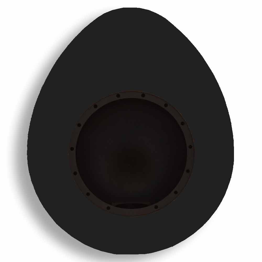 Väggmonterad oval bioetanol spis med modern design i stål, tillverkad i Italien.
