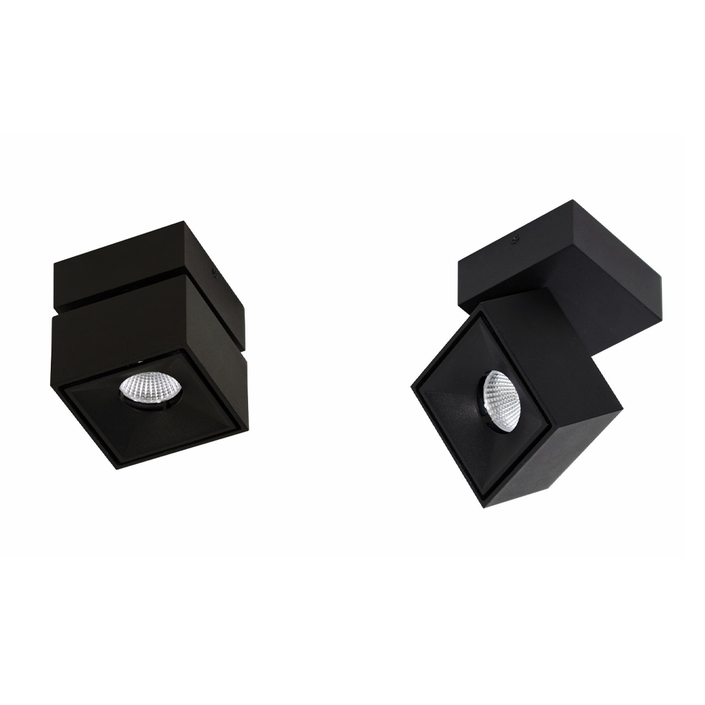 Fyrkantig tak- eller väggspotlight med vit eller svart aluminiumled.