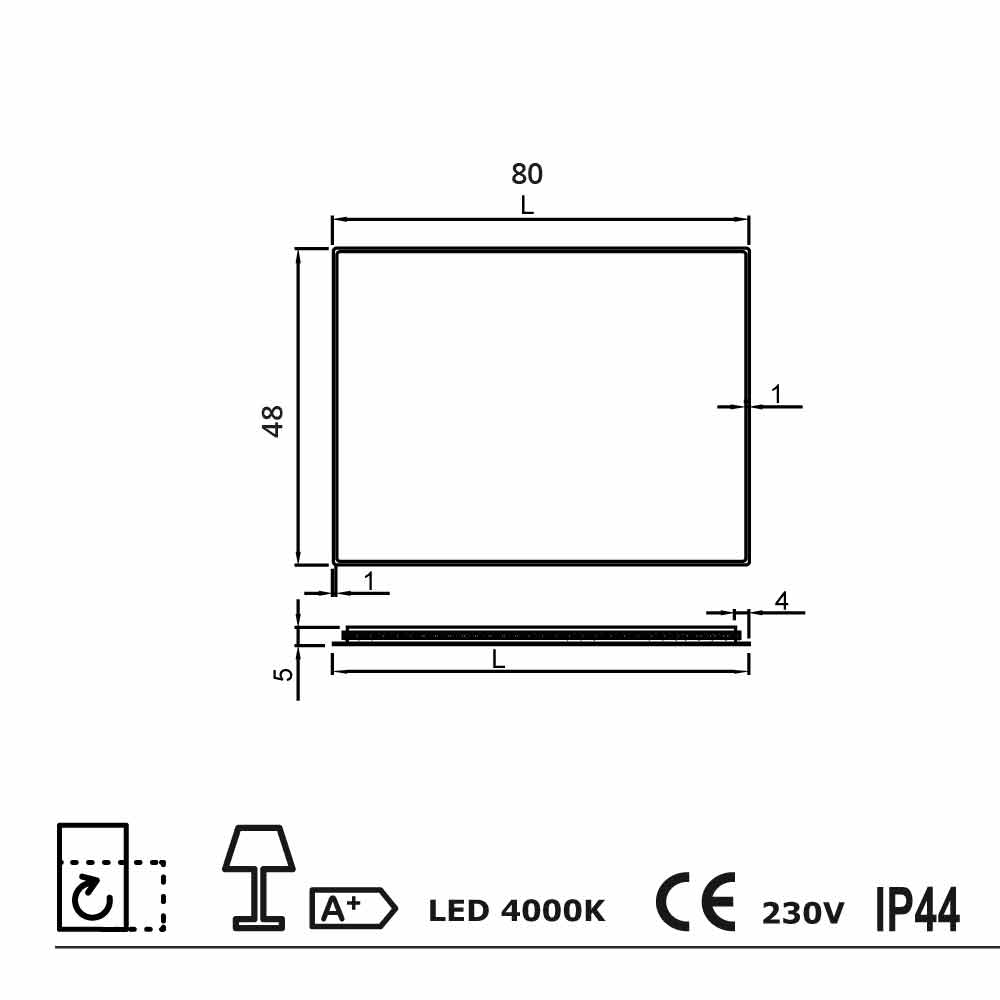 Elegant spegel med integrerad belysning lysdioder med mjuka och viktiga linjer. De lätt rundade kanter och satin gör detta extremt ljusa spegel och lämpar sig för alla miljöer. Reversibel Väggmontering Horisontell / Vertikal.
