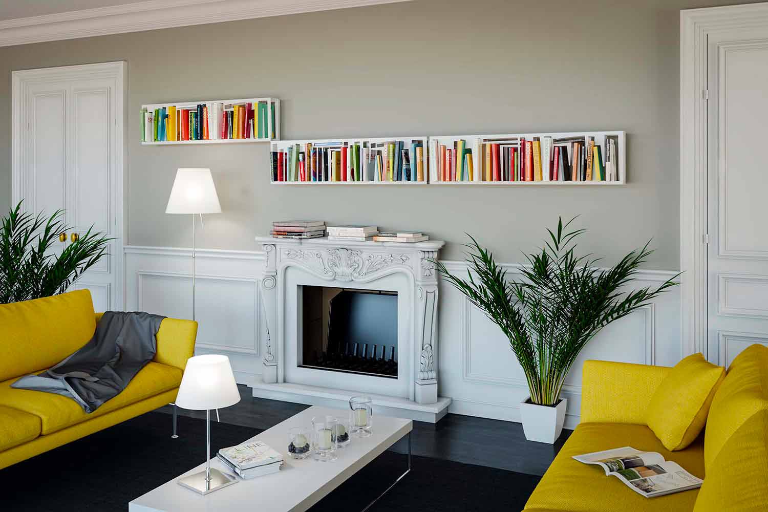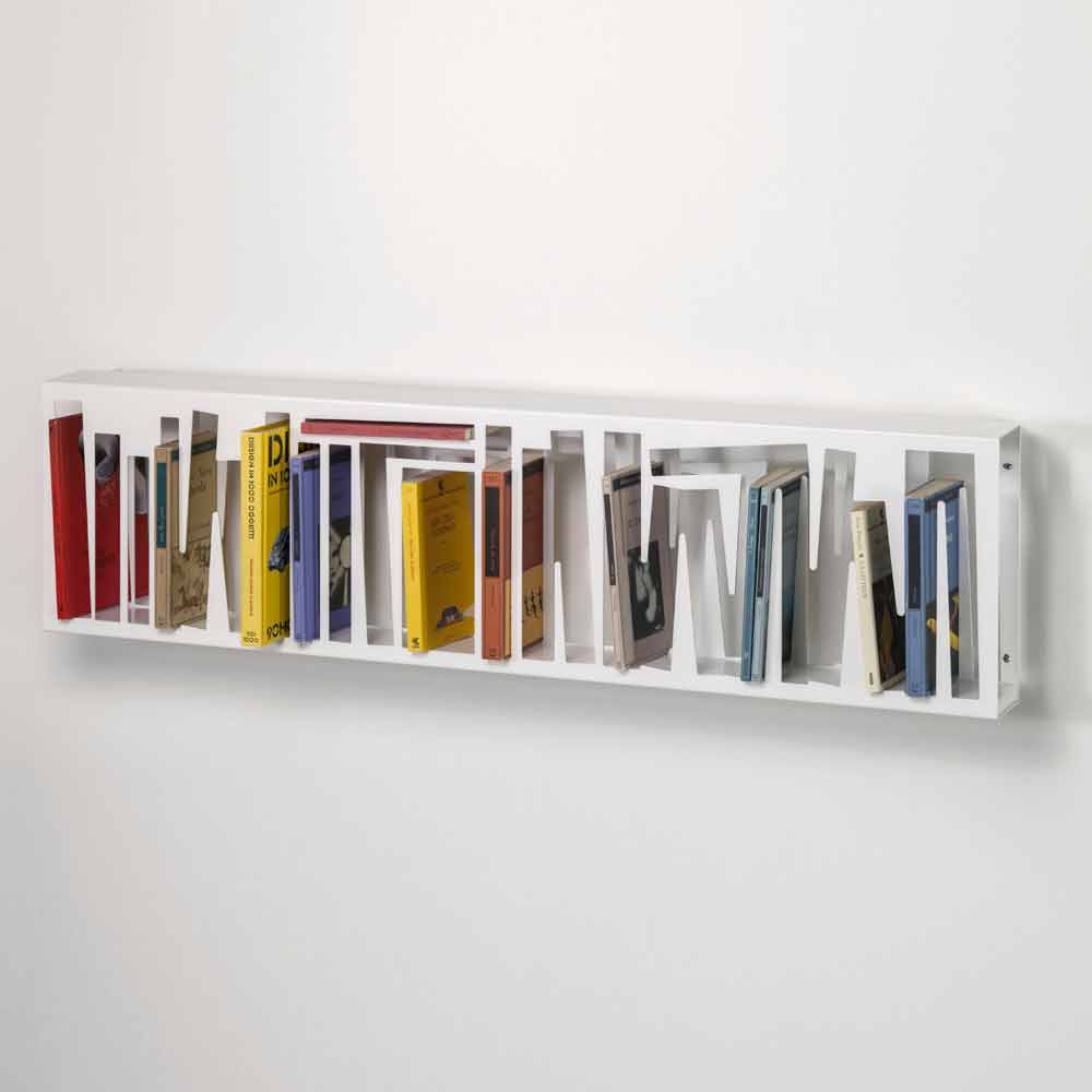 Väggbokhylla för modern design med hyllor som produceras i Italien i vitmålad metall.