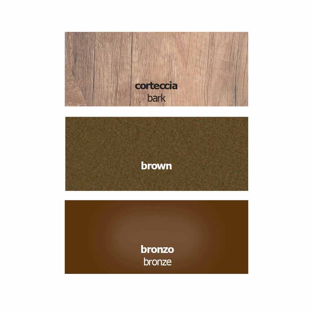 Upphängt skrivbord med väggfäste tillverkat i Italien med skiva i melamin med barkfinish med kabelhål, struktur i brunmålad metall och avtagbar vertikal panel i bronsplexiglas . Den är också komplett med en praktisk utdragbar låda som matchar strukturen.