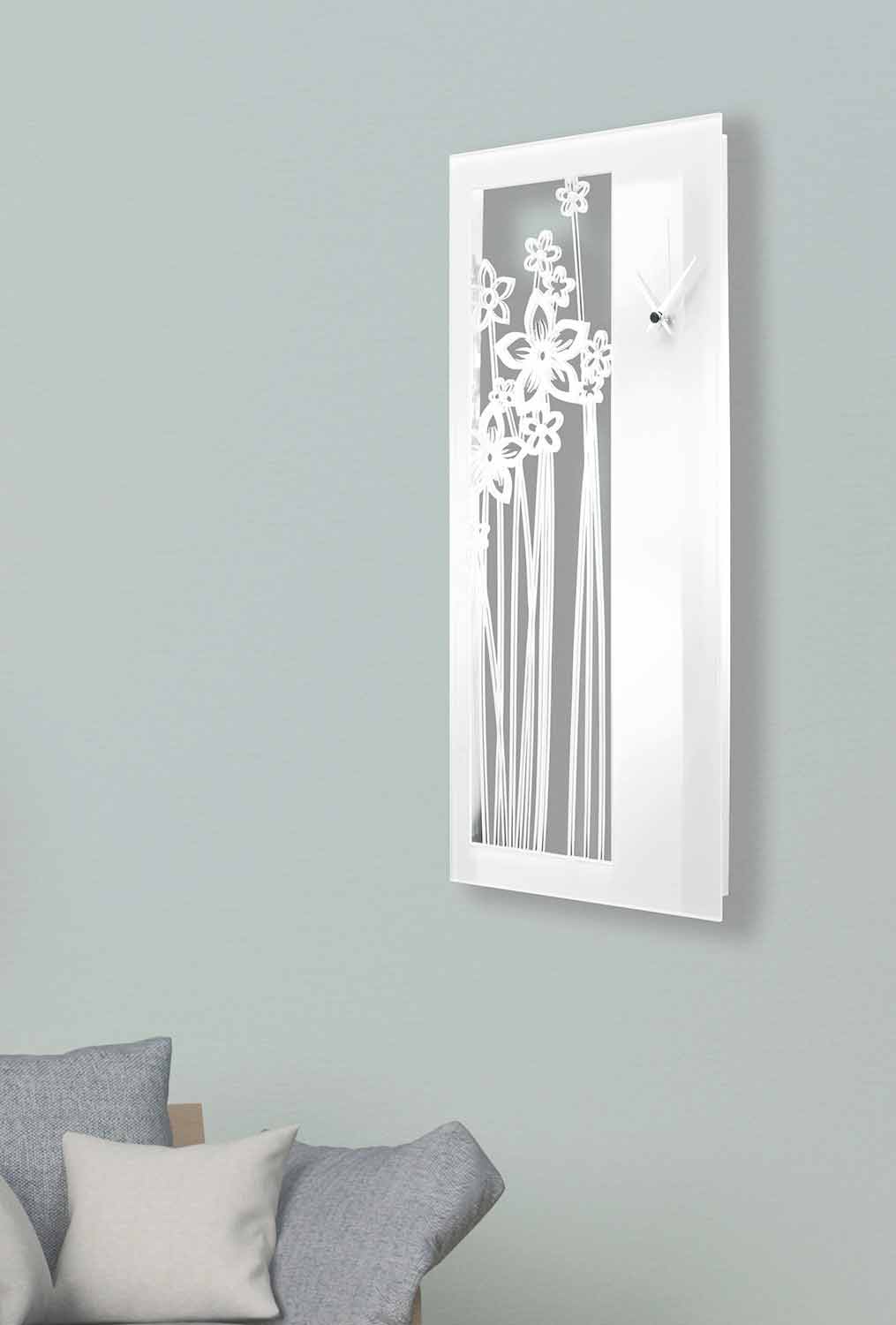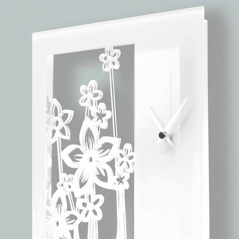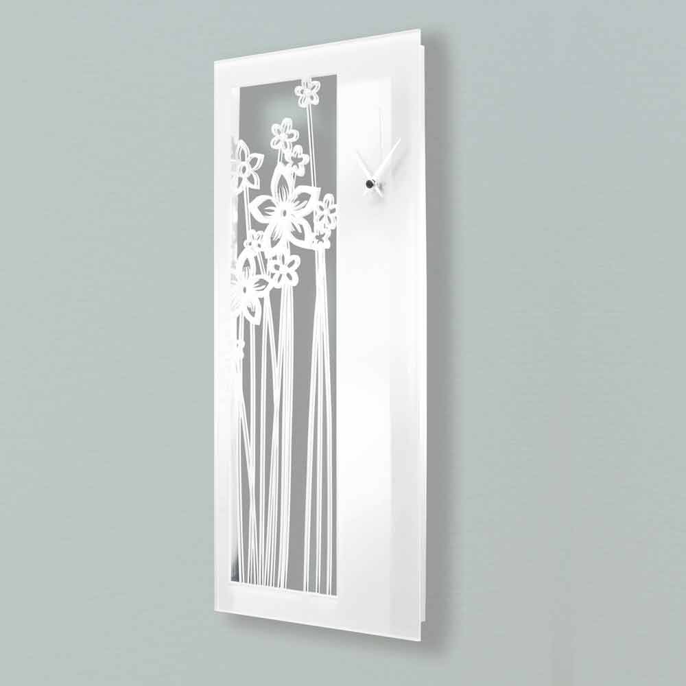 Stor väggklocka med en rektangulär och modern design i vitt plexiglas, tillverkat i Italien.