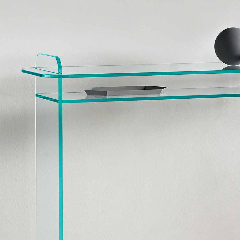 Produceras helt i 12 mm tjockt extra klart glas , tack vare dess praktiska och minimala former är det idealiskt för att ge stil och funktionalitet till miljön.