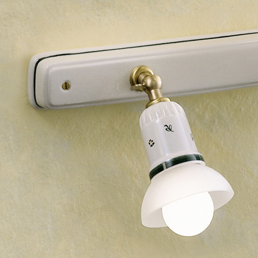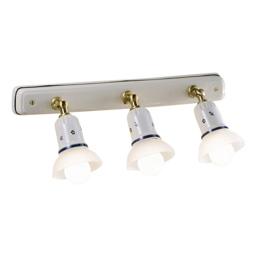 Linjär vägglampa 2 eller 3 lampor i mässing och handmålad keramik, tillverkad i Italien av Ferroluce.